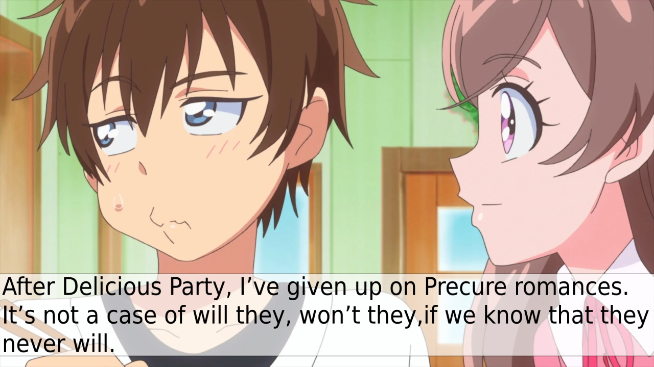 This is my proposition for how the last 11 episodes will play out. I'm pretty sure I'm wrong, but I couldn't help but have some fun imagining how the season will play out.>39Kokoro reaffirms why she loves dancing so much, probably another father flashback involved. I could see her outright having a discussion with all of the Dancing Stars about the topic.>40Nana shows off to her mom how much she has grown, the rainbow colored melody being an implication that she's (platonically) enamored with Uta, and her mom picks up on that.>41Kokoro realizes that she (platonically) loves both Uta and Nana, at least in the same way Meroron loves Purirun, but she knows Uta is in love with Kaito and Nana is (platonically) in love with Uta. She decides to keep her hopeless (platonic) love hidden away instead of throwing it out completely.>42Kaito helps purify Jogi, Uta is happy for them but still somewhat sad she isn't the most important person for Kaito. The other Cures all feel guilty for leading her on.>43Meroron feels the most guilty about the whole thing and tries to cheer up Uta. She does that by going on a one on one date with her. Also Chokkirine's redeemed this episode, mostly because of Meroron but Cutty and Zakkuri help too.>44It's a fun Christmas episode with all of the redeemed villains (and Kaito) hanging around. Purirun finally realizes that she's (platonically) in love with Uta like how Meroron loves her and confesses her (platonic) feelings, but before she gets an answer, Darkiine interferes.>45-49After a couple of twists and turns, the (platonic) Uta harem is formed, and everyone lives happily ever after.