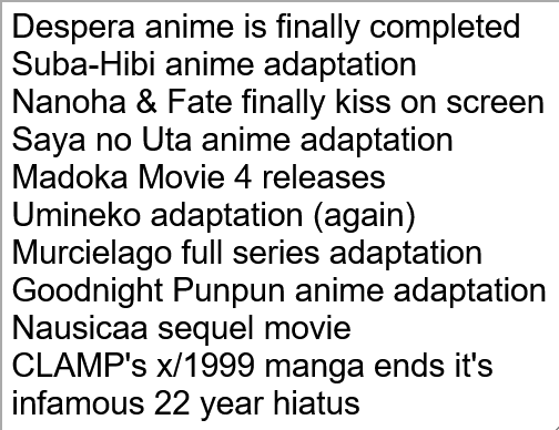 Gotta be something related to Mai-HIME, right? The original source for all of /a/'s shitposting. A Season 3 announcement would probably melt the board down.