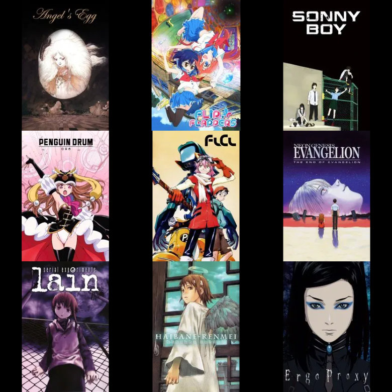 >>283474629In what world are Penguin Drum, FLCL, and Haibane Renmei 2deep4u? How do you even put those in the same conversation as something like Lain?