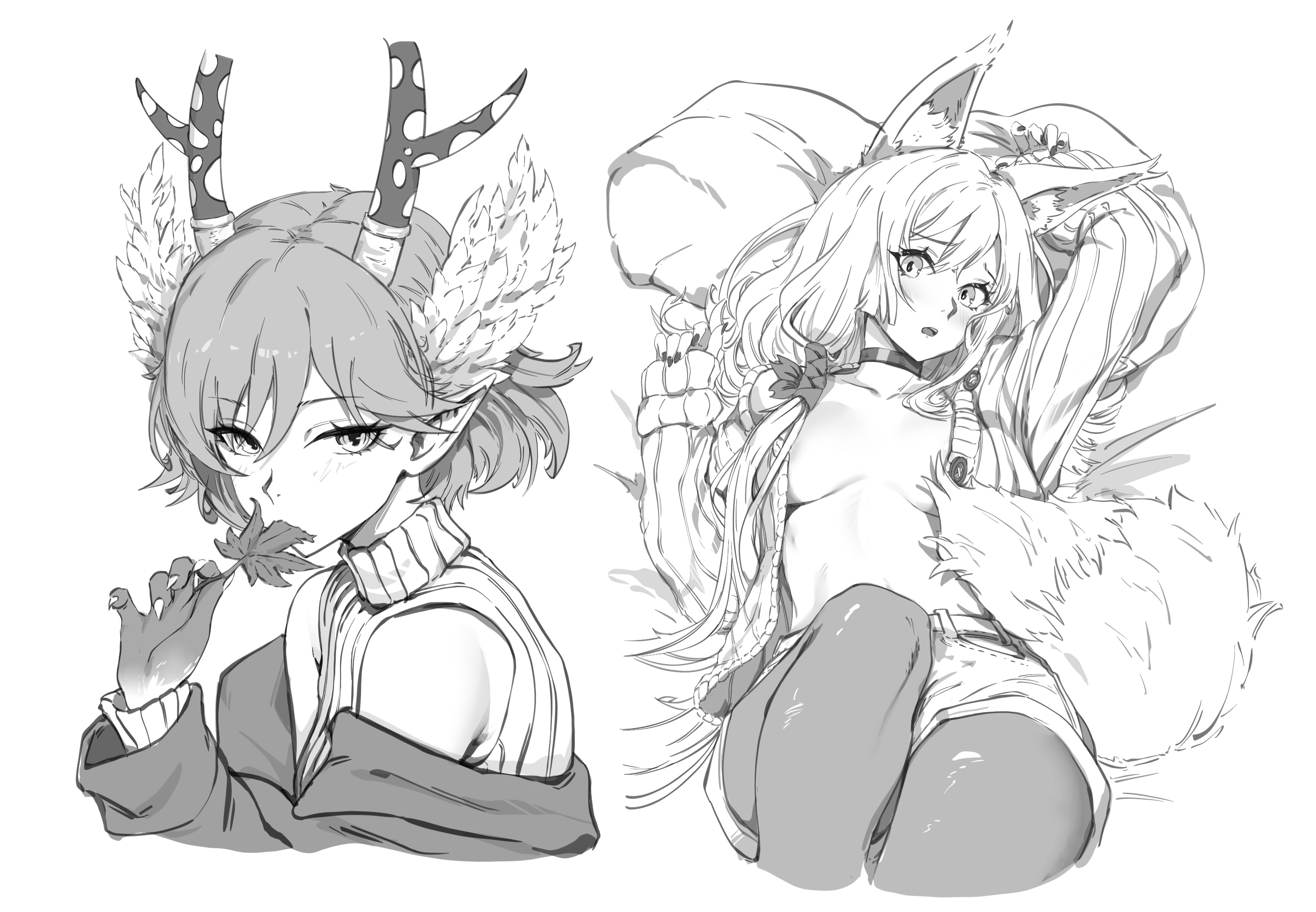 >>283493273>>283499056What a wonderful sight to wake up to, I immediately feel revitalized!I don't even know where to begin, she truly looks beautiful here, seeing her seriously took my breath away.Your attention to detail and shading is honestly incredible, I love the fall theme you went with, I'm a sucker for the fashion style and it's not too often I get to see her in alternate clothing so this is a very pleasant surprise and super pretty outfit choice, it captures the tone of the season perfectly.The way she's so delicately holding the leaf really accentuates her beauty too, your presentation is just phenomenal.I absolutely adore how you drew every detail but her eyes stand out to me in particular, they're always my favorite part of a piece and they look especially beautiful here, I could easily stare into them all day long. Though it'd be difficult to resist kissing her almost immediately.>I also have no idea who she is or why she's eating that card but have something autumn themed of her eating a leaf.Her show's been somewhat forgotten but the gist is that she's a money-eating familiar of sorts, though she's has a near-bottomless appetite and is capable of consuming just about anything.I quite like when artists play on that aspect by having her nibble on various other objects, so this is rather fitting and a very charming way of exploring the piece's fall theme.Thank you ever so much for drawing her, you really did capture every detail of her perfectly. Fantastic work on Natsume there too, she looks just as gorgeous.Please do be sure to have a most wonderful week!