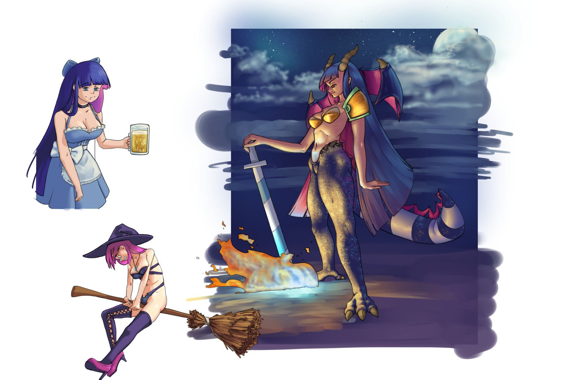 >>283500609Oh wow, two in one. She looks amazing in both pieces!Oktoberfest Stocking is looking mighty fine and it looks like she's treated herself to some snacks while on the job lol. A healthy does of cleavage behind the cute frills of her dress, very sexy.And that Dragon-girl Stocking. God damn. She's beautiful and majestic, athletic and powerful. An incredible toned stomach and strong legs and tail. The glitter effect and lighting really step the whole piece up too.I love this design, I hope you don't mind if I use it in the future.Thanks so much! These are both amazing!