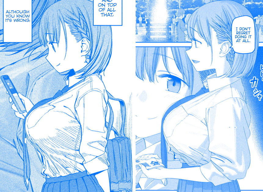 Not how it works retardbro. >>283515655 already pointed out one development in the oneeshota pair here that summarizes ~95% of Kouhai-chan's story, AKA her visiting his place. That is the absolutely most "progress" in her non-relationship. What does Kouhai even do besides looking unaware of her surroundings/being drunk, either? They're at least on par personality wise, though honestly Tonari-chan here shows way more initiative with the guy she likes.
