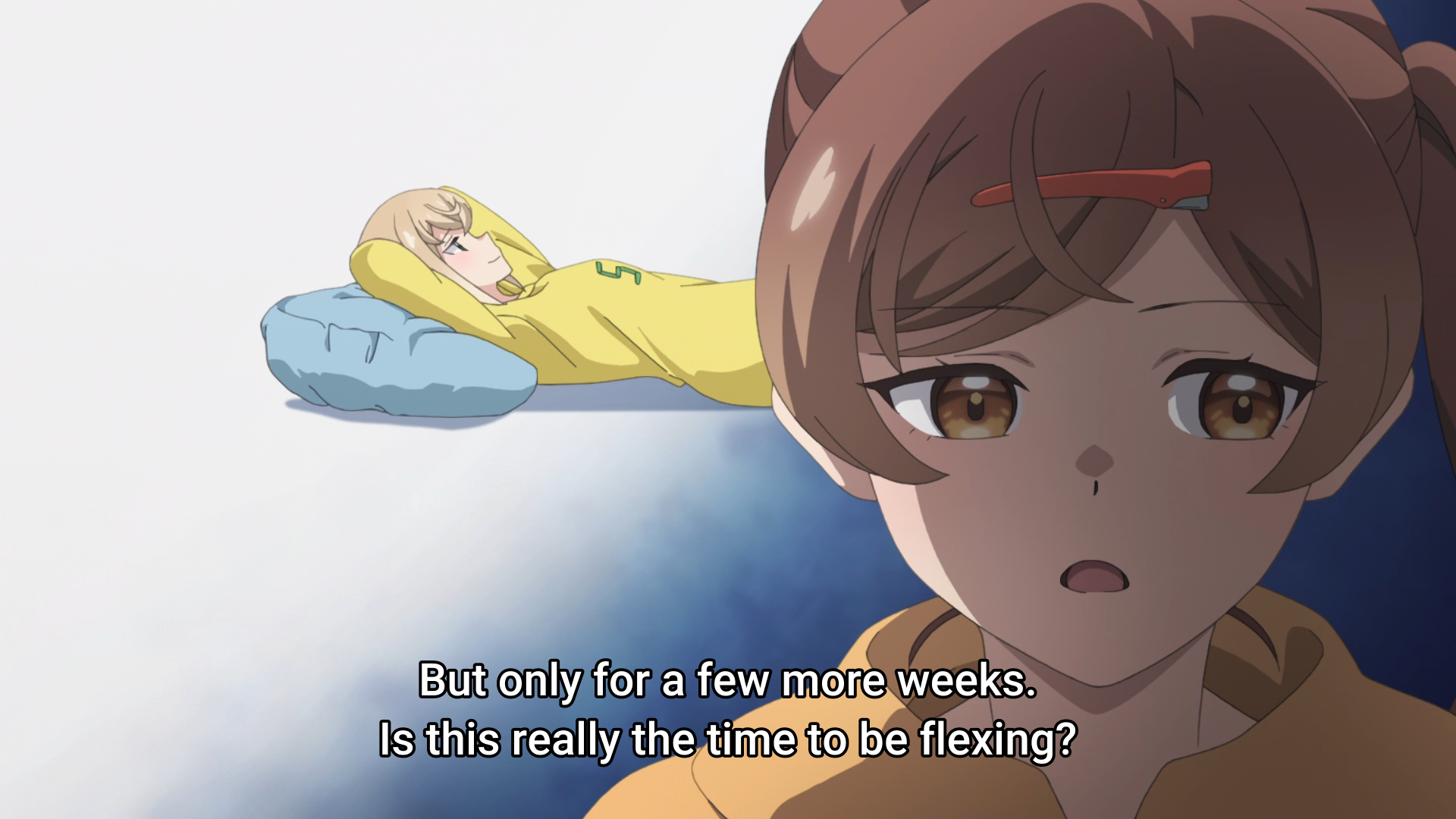 >when are you leaving>...leaving?i like her, she should stay on as a permanent cast member by becoming futami's second assistant