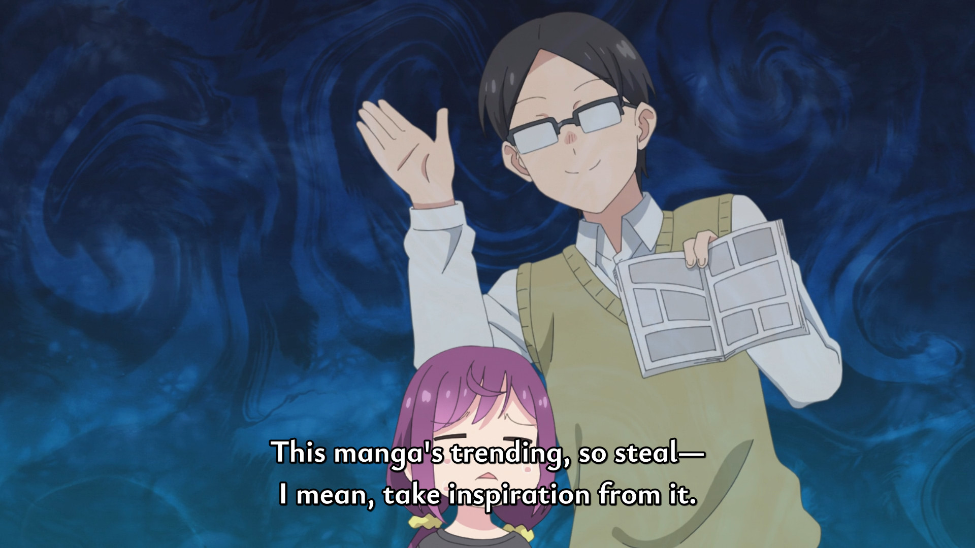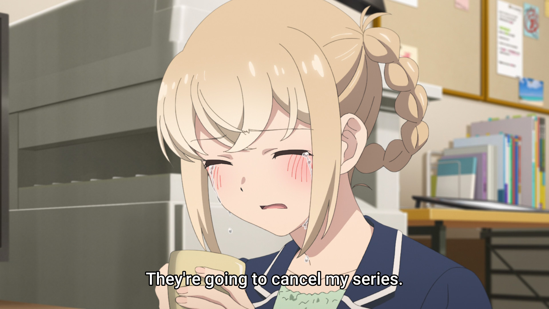 >>283518087Nashida was eventually portrayed in a sympathetic light, with the reveal the reason she came here is that she has a very hard time coping with her manga being axed.The show actually does a good job balancing comedic and more serious moments.