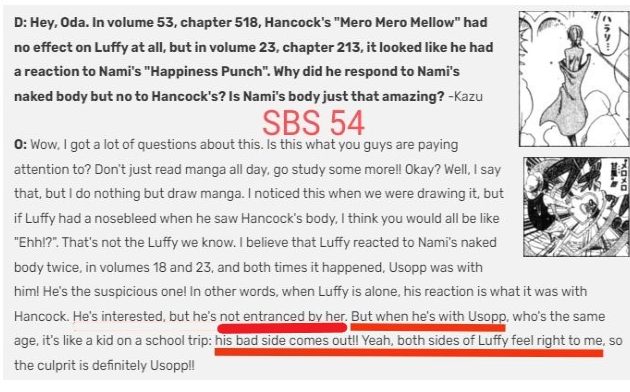 >O: Nobody would've taken a captain that set out to sea as a child seriously, and looking like an adult was convenient for all sorts of eventualities in her journey to find her father, but on the Sunny and at Elbaph she feels safe, so she's able to act like a kid again. I hope you can keep an eye on how she continues to develop.Uh oh... this translation doesn't sound like she's staying on the Sunny...
