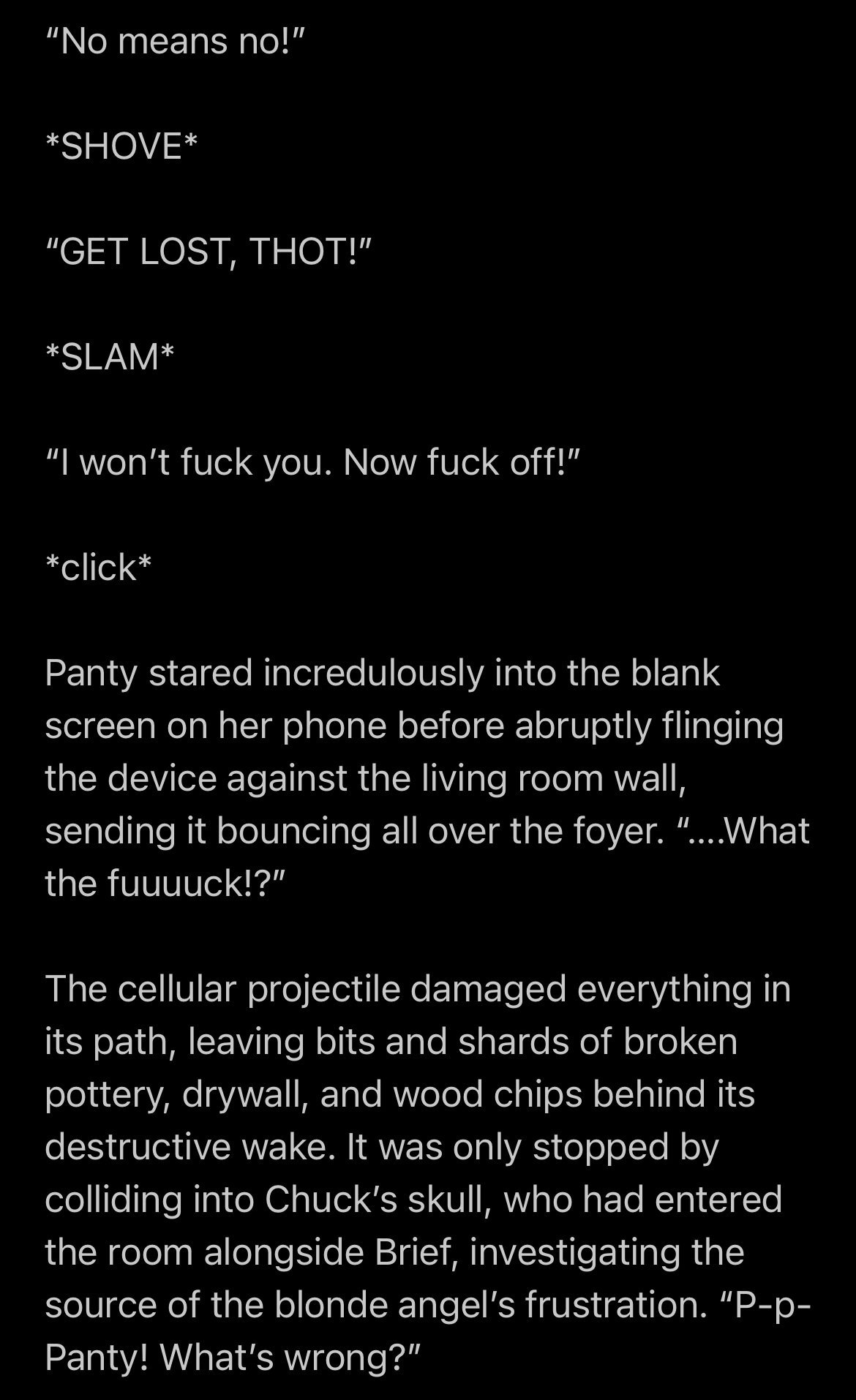 Just posting an excerpt of my next fanfic, the one about Panty participating in No Nut November, it will be Panty/Brief this time around.I hope to have the first chapter done by Saturday, but it will be a challenge because it seems like I can’t fucking find the English dub scripts anywhere, the wiki erased the subs for some reason and replaced it only with subs. I already had everything planed out, but I really wanted to make the dialogue in character as possible and not go overboard with swearing