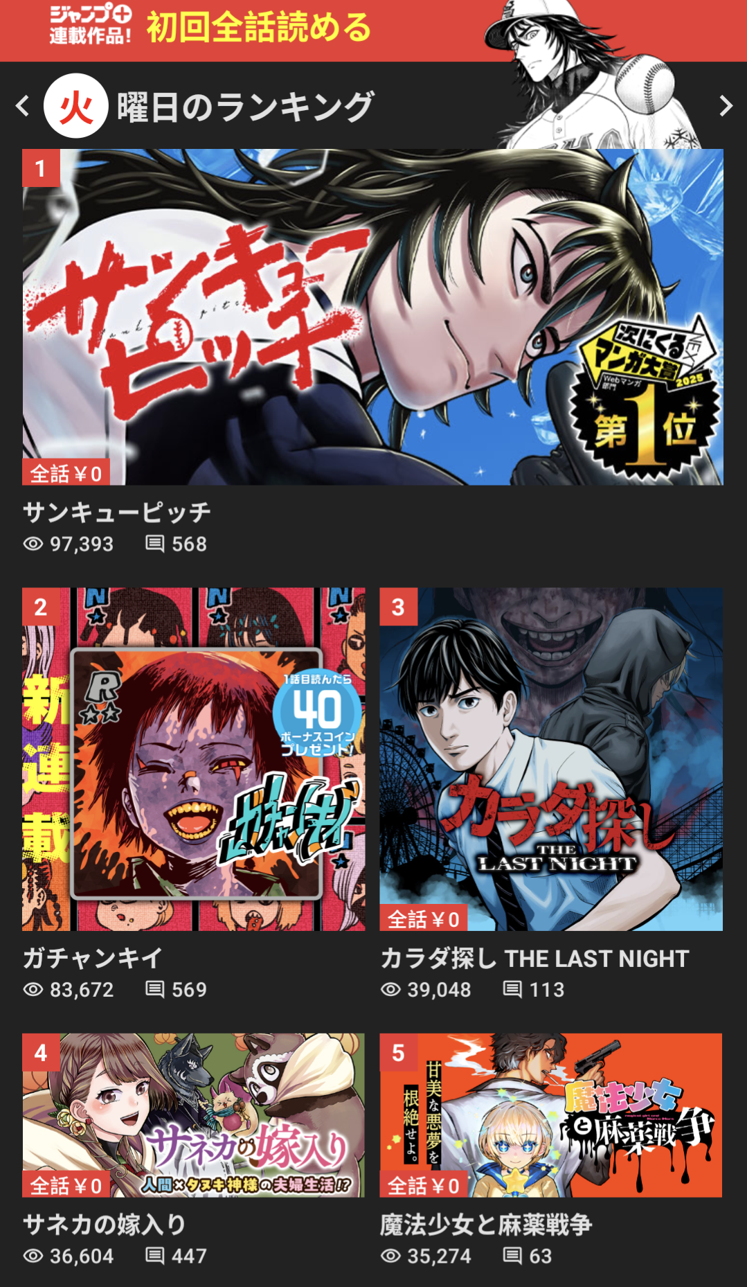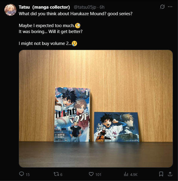 >randomly came across some JP tweet about some random baseball manga>it's from jump plus>it looks like thisit's called サンキューピッチ, for some reason it kinda had some resurgence in sales where all 3 vols appeared in top 500 weekly shoseki.if you want the estimate sales:>Volume 1: 10,383 copies>Volume 2: 11,225 copies>Volume 3: 16,202 copies