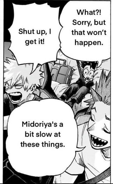 >>283749950>>283750089Deku got screwed over because Hori only really cared about his plot and is one of those loveless autists that don't bother to include romance in their story except in the most abstract form, because they've never experience it themselves and don't know how it works or even why they should want it. Think about it. Its not just Deku, there isn't a *single* developed romance in the entire story. Not one. The most you have is two characters that were introduced as a pair at the start already in a lovey-dovey relationship, but they are just as much in stasis as any of the US students are. No one romantically pursues anyone else in this manga, no one develops feels and confesses their love or kisses or asks to go on a date. It just... doesn't happen.I legit think the closest thing to romance in the entire story is Toga's irrational obsessions.