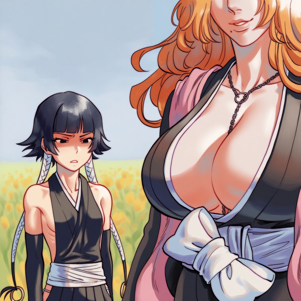 >>284033806Reminder that canonically, Yoruichi is like 5'2'' and Orihime is too, and Rangiku would tower over them both.