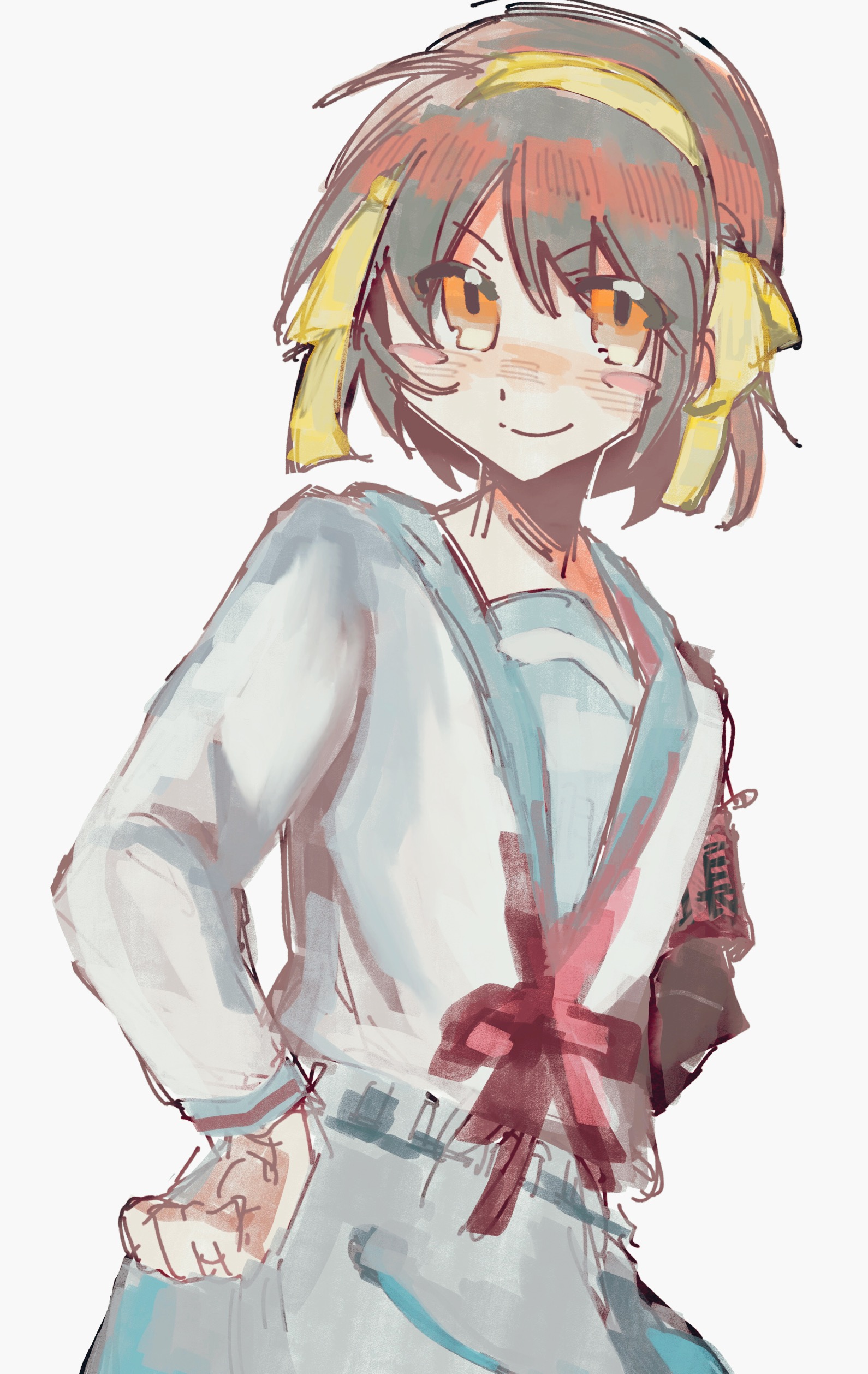 Requesting something autumn related, like roasting sweet potatoes, playing with a leaf blower or adult Haruhi in some fall fashion.Or pick one of these prompts, there's lots this month.20th Nice thighs day22nd Nice twintails day23rd Gloves day25th Office lady day/Nice smile day28th Nice knee highs day