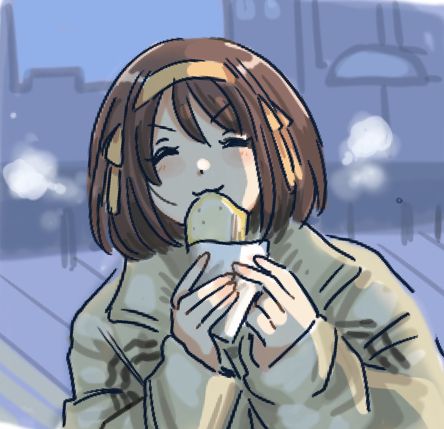 >>283987015Oh wow, another lovely draw, and it's so scenic! Hina looks perfectly dressed for the autumn weather, very stylish! Love the colours, too. Sitting on a tree branch with a great view of the cityline...wow. That feels really comfortable and nostalgic, a very charming scene. And she looks so happy, too! Not to mention cool, with the breeze blowing through her hair... God, I wish I could be there with her to enjoy every beautiful view together.Thank you very much for the thoughtful gift, I love stuff like this. Outdoor scenery, just enjoying the sights...I miss those days. Hope you have a great week!