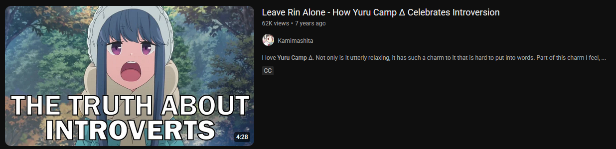 >uh why isn't yuru camp a dark, gritty deconstruction of the concept of slice of life that deals with rins trauma