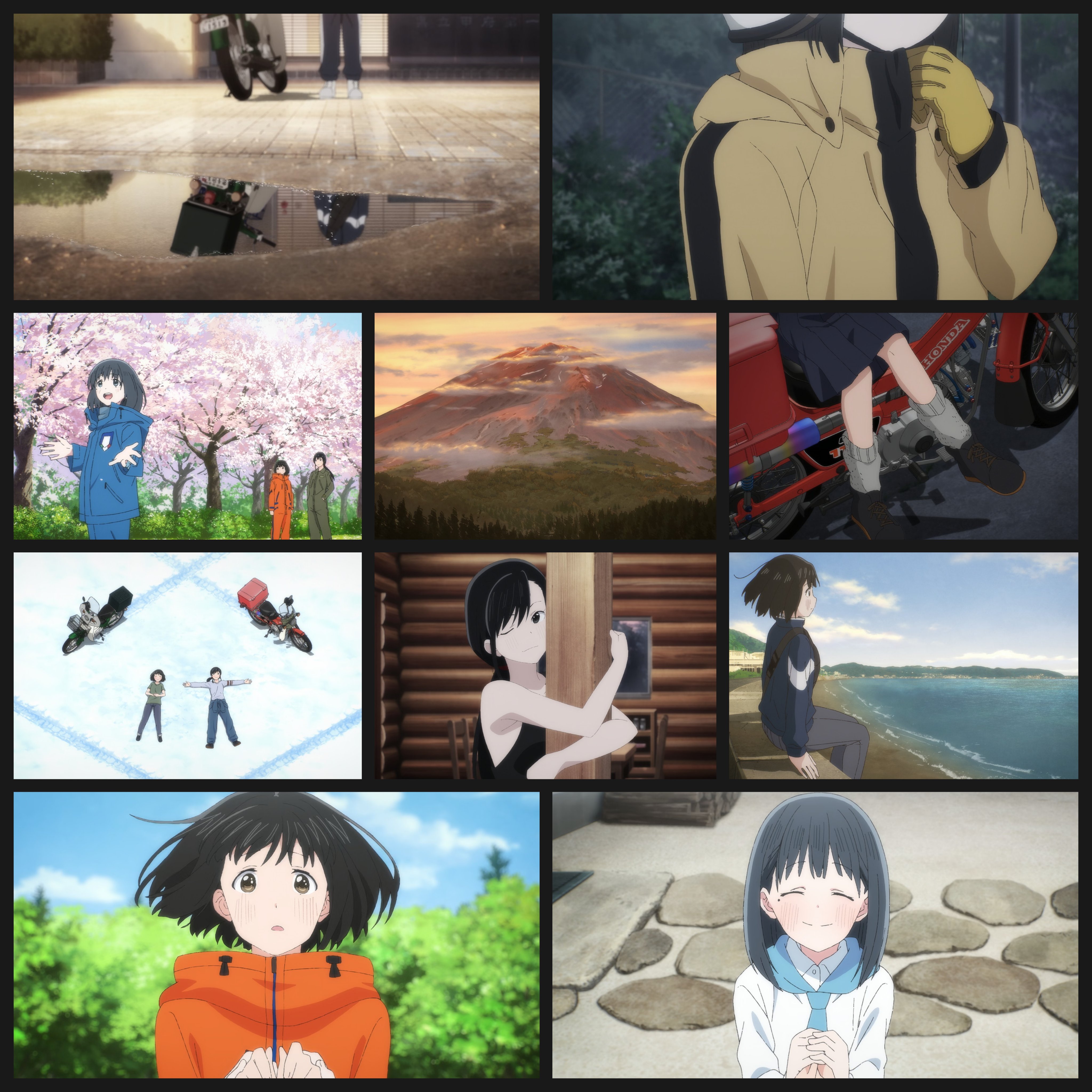 K-On showing several years allows for character traits to grow and evolve in a more natural fashion. Rin's friction with the other girls never really gets resolved or even explored. The movie (for all its myriad issues) shows how she's still distant with Aki and has difficulty gelling with her, but the show never really gets into the group dynamic in that same way. K-On also benefits from more focus on its central themes whereas Yuru Camp is a camping show, but also a tourist destination show, but also a food show, but also a travel show. Sure, these are all components of camping and woven in fairly well, but by S3 they were really grasping at straws and skipping over the actual camping. These issues with focus and structure are obviously worse in Mono, but even in S2 you can see the rot setting in.