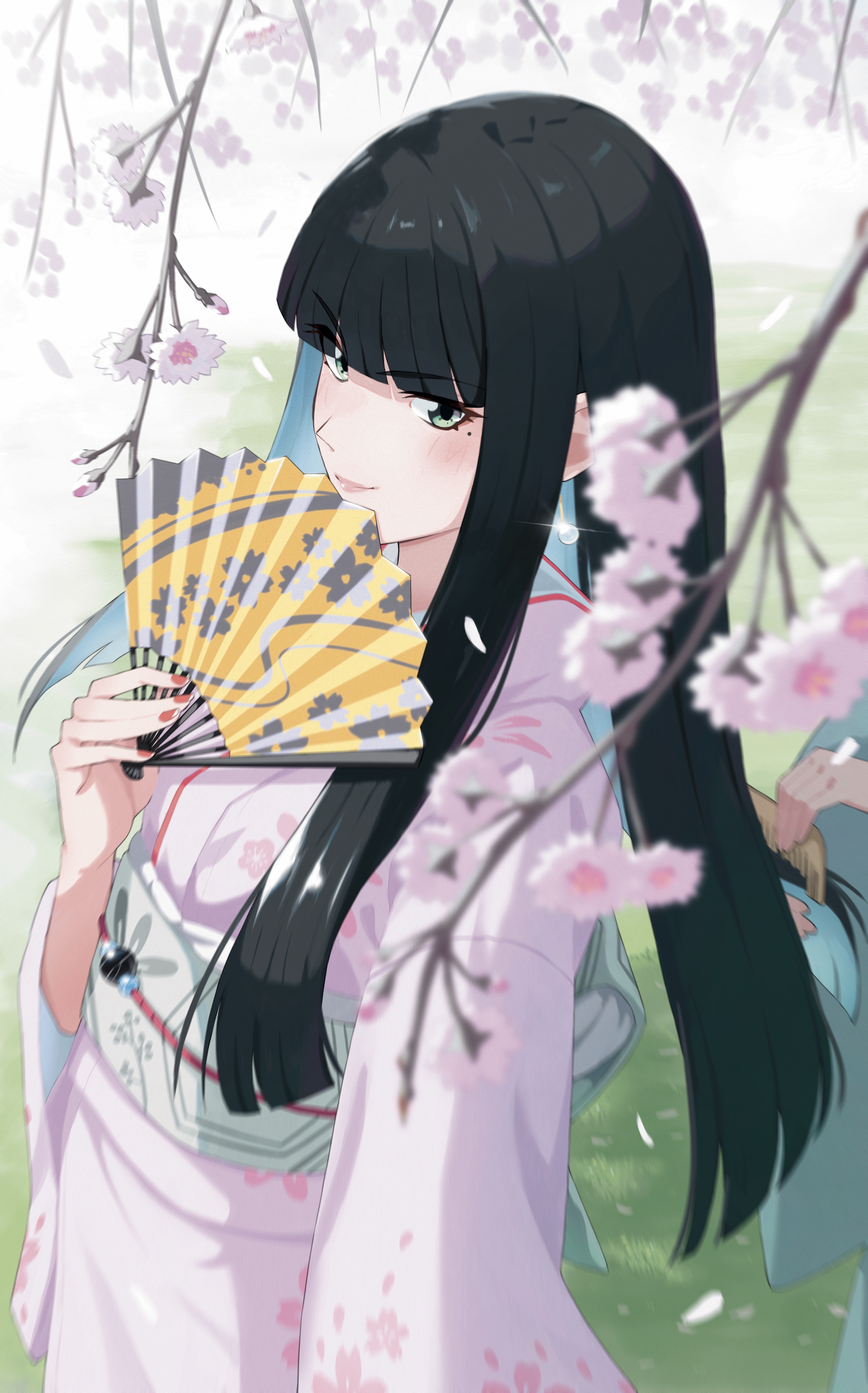 >ponytail done up without fuss>hair covering one eye, long bangs swept on other side>black hair + blue eyes comboputting all of these on one girl is cheating