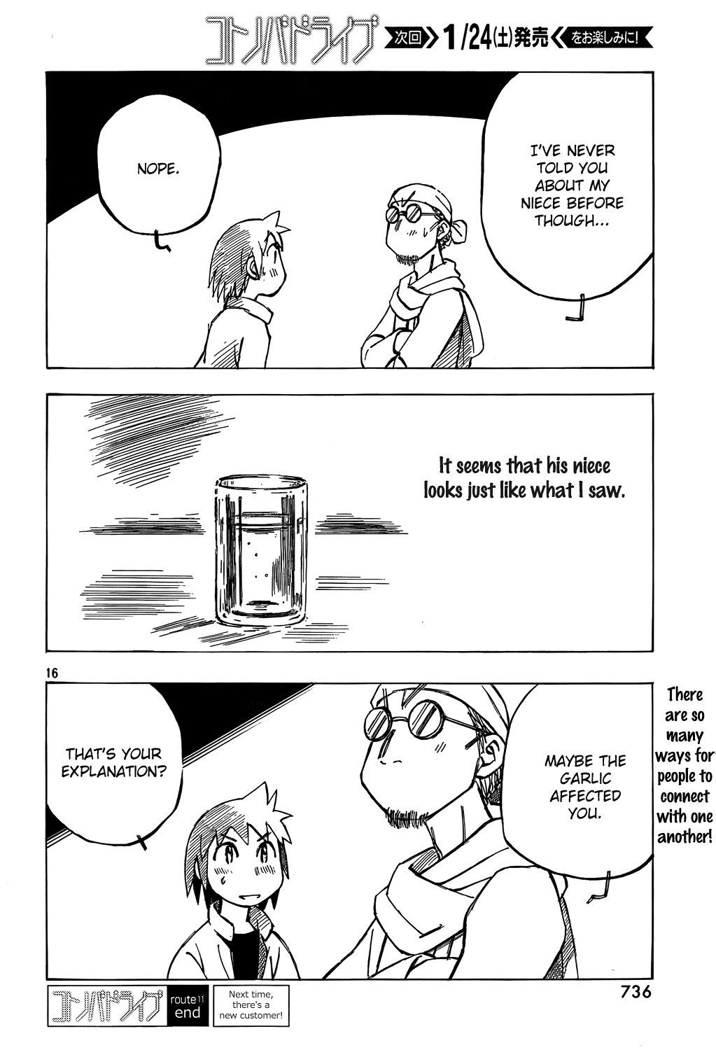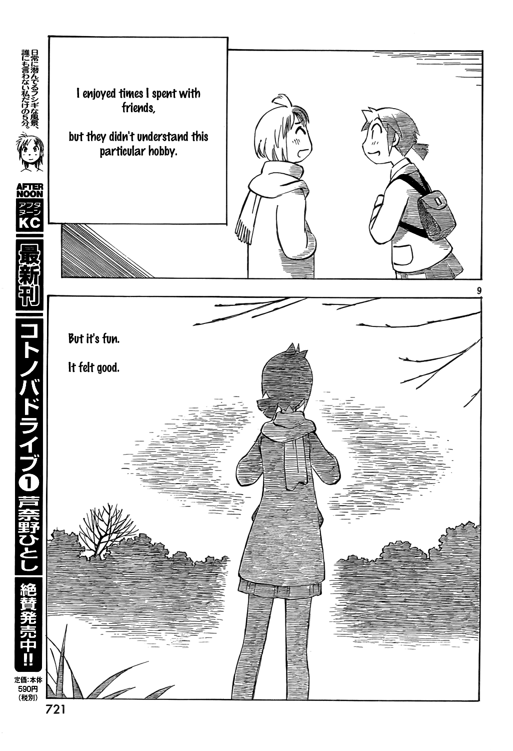 Thanks as always OP. I will say, as much as I'm enjoying Kotonoba Drive, I do miss the character dynamics from YKK or Isaki. This is more of a collection of tone poems. Perhaps I just have to adjust my expectations, because I do quite enjoy what it is, but I can't help but feel that YKK's blending of the smaller magical/surreal moments into a larger story made them feel more special. Even PositioN, rough draft of KD as it is, felt like it was building its characters and their dynamics in a way this doesn't really. Perhaps I would have appreciated this more reading it in a manga mag as it came out, as a little refresher between more plot-oriented works. Anyone else feel similarly?