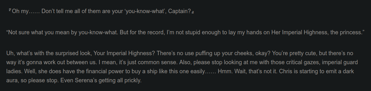 >>284013789Did she even do that, or was she only the first after he got there and someone else did before the start?She did introduce him to girl on the ship means sex, although that could have been the elf alone. He also didn't get in the habit of doing it immediately with others, so he didn't learn that much from it.