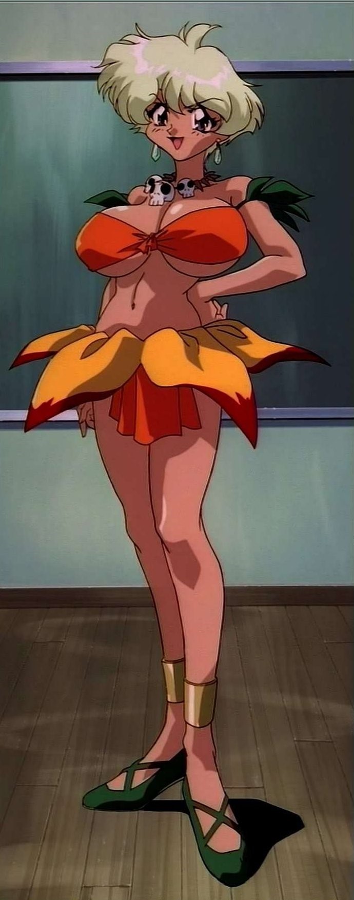 >>284078259A tomboyish robot with chocolate skin and enormous tits who teaches karate to elementary school boys, loves drinks, and shows her feminine side when scared by horror-related things. She's perfect.
