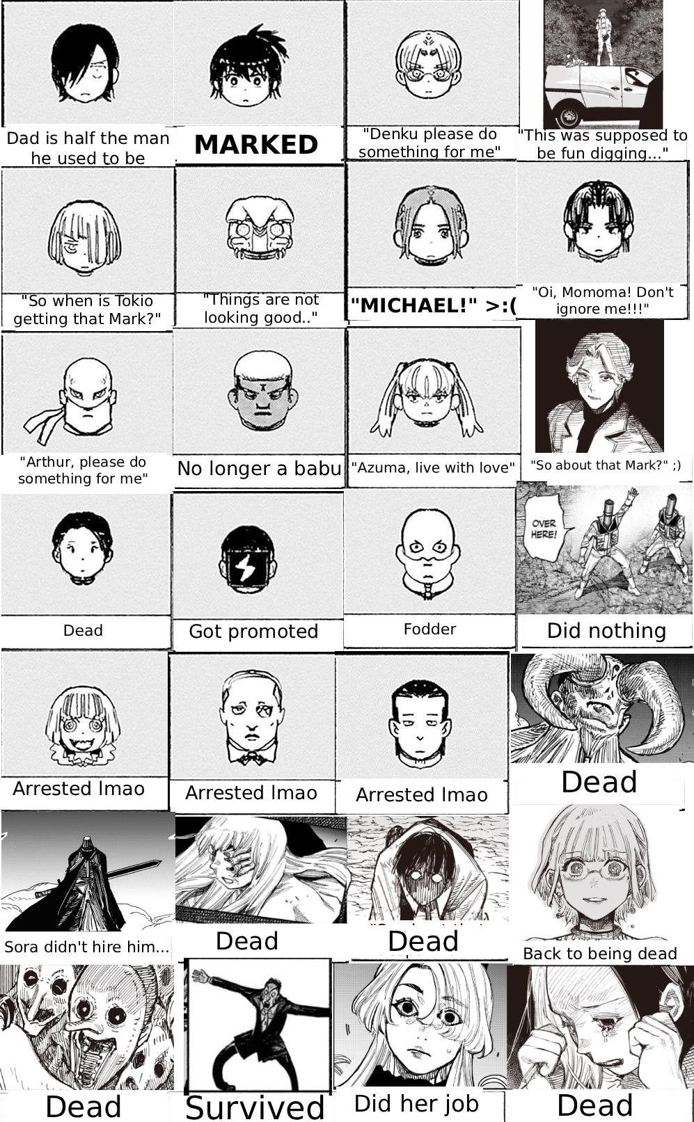 Character Stats as of this chappie. Thinking of making a new one to take the deads out once we reach chapter 70