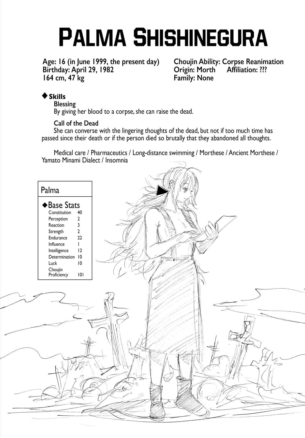 >>284037412>>284037452>>284037479Palma is a survivor of a fucked up apocalypse, of course her perspective on living and dead is weird, but she didn't do anything wrong here. This way she can at least let Tokio have the last talk with his father.Interestingly, no sight of Tokio's sister. Did she become a choujin?