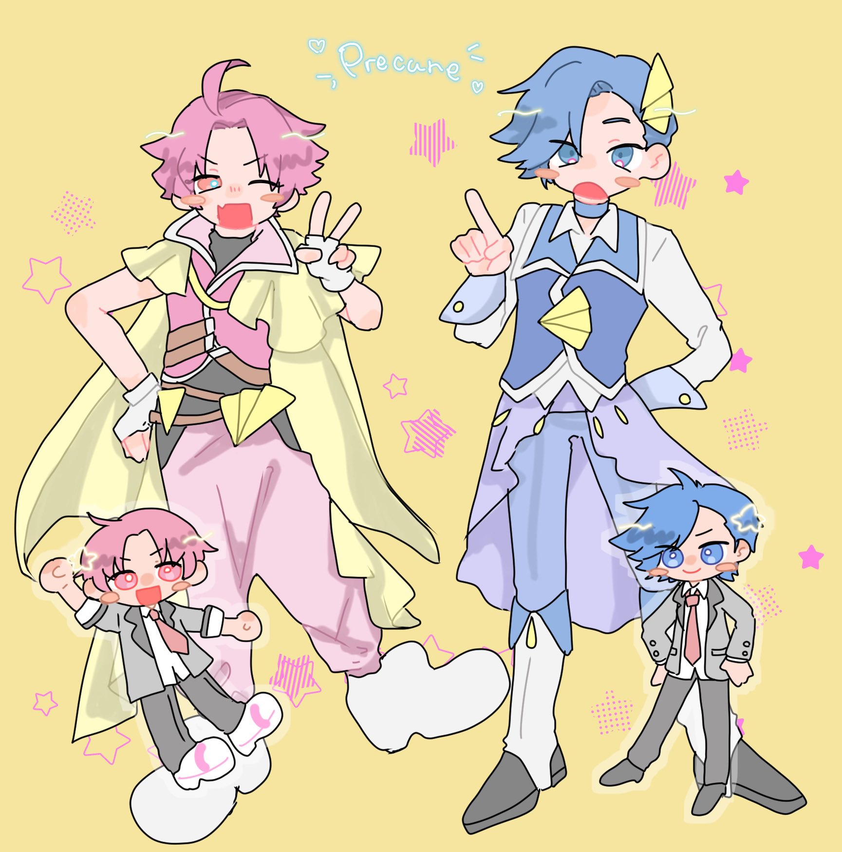 Pink is a literal braindead retard, Purple is a snarky super genius, Precure of Darkness is a Phantom Thief, the gems are the dreams of people, the villains are a criminal organization that steal deams and turn them into monsters, Detectives and Dark Precure are rivals.
