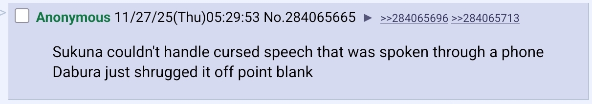 >>284111258sukuna said all that and ater he got hit with brain damage.