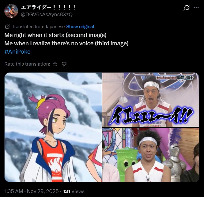 https://x.com/anipoke_PR/status/1994285127288115361>Friday is Pokémon Anime Day! The last time they battled, Roy got defeated by Kakitsubata, who knew double battles like the back of his hand. Having learned from Kakitsubata's chill attitude, Roy now takes him on again together with the highly motivated Achigator and Taikaiden, with both Liko and the others and everyone at Blueberry Academy watching over the battle...!