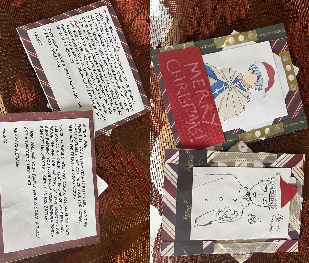 AM of FL I got your card! Thank you so much for the cute Mob and Himmel. We do match often ahah (which means you’ve probably noticed my recycling of wishlist with just minor edits….) Happy to know you’re a fellow shota enjoyer. Wow I really need start Airgear. I’ve been craving that raw shounen. Merry Christmas!