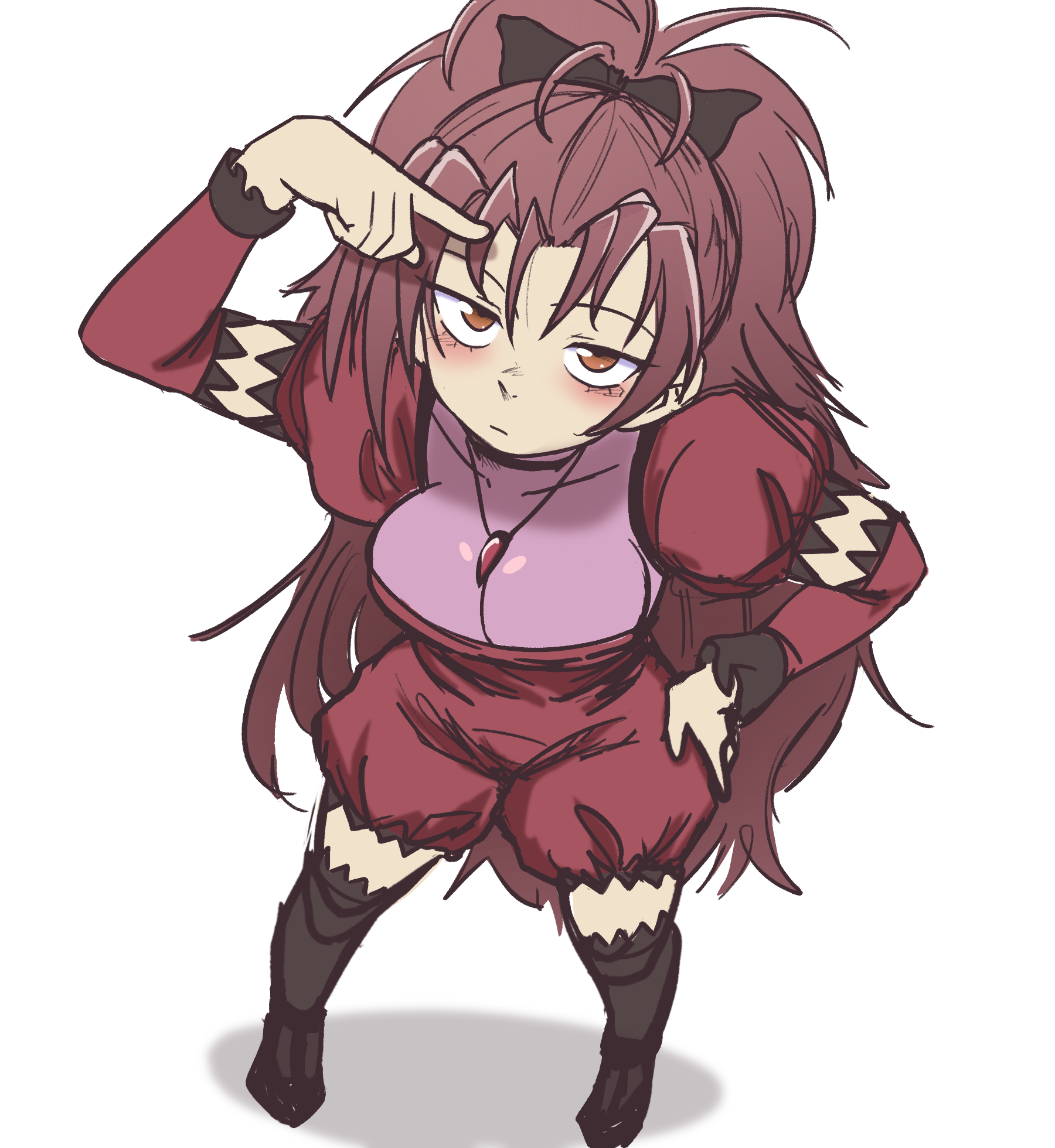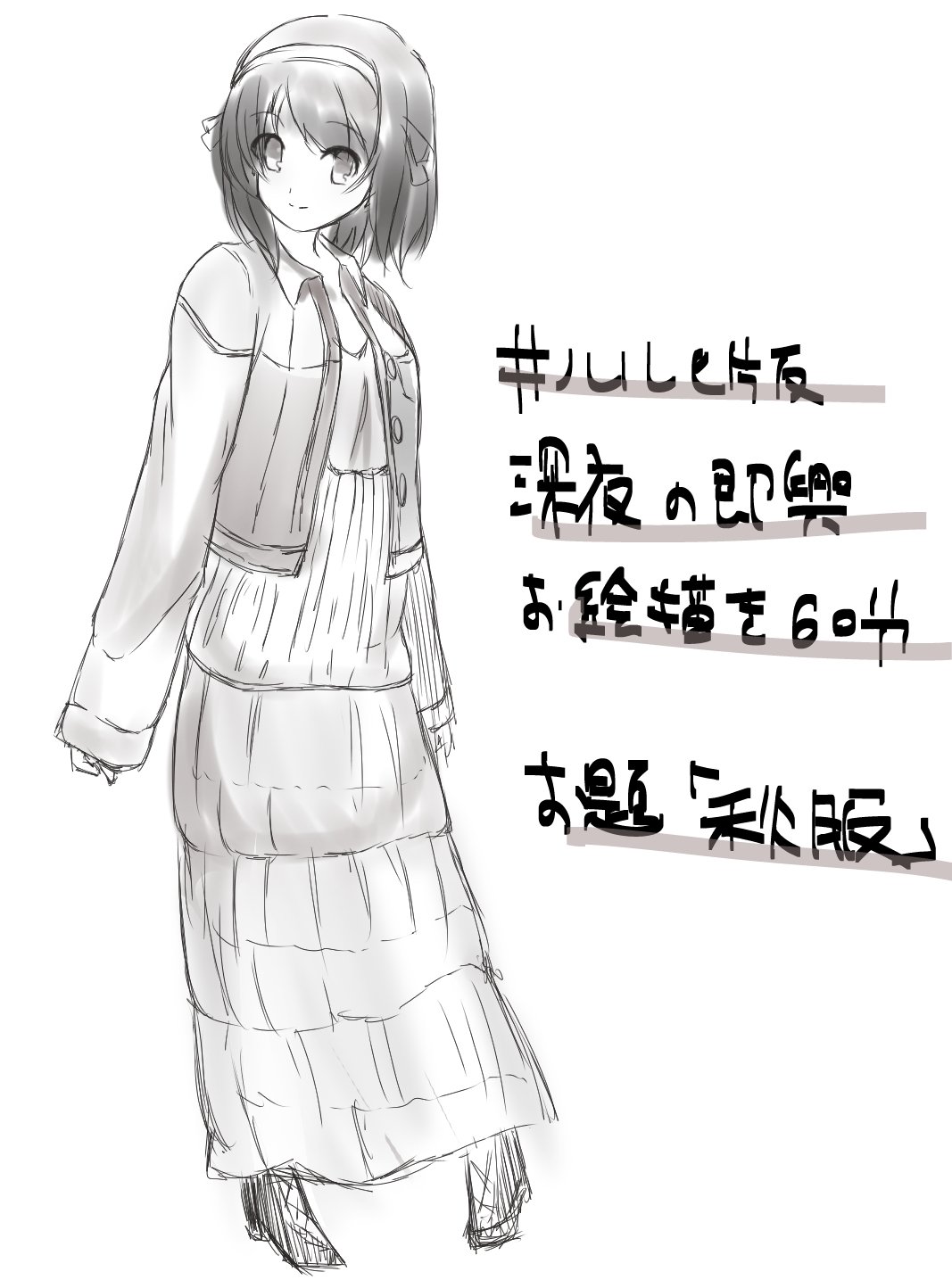 Requesting Kurome dressed in a ball gown.Or Kurome wearing just an oversized woolen sweater hoodie.Or Kurome wearing a tight riding outfitOr Kurome wearing some autumn fashion! https://imgur.com/a/10iT7yqOr Kurome dressed as Hiromi from BA https://i.imgur.com/zT3Anye.pngAnything else is fine as long as it's cute.