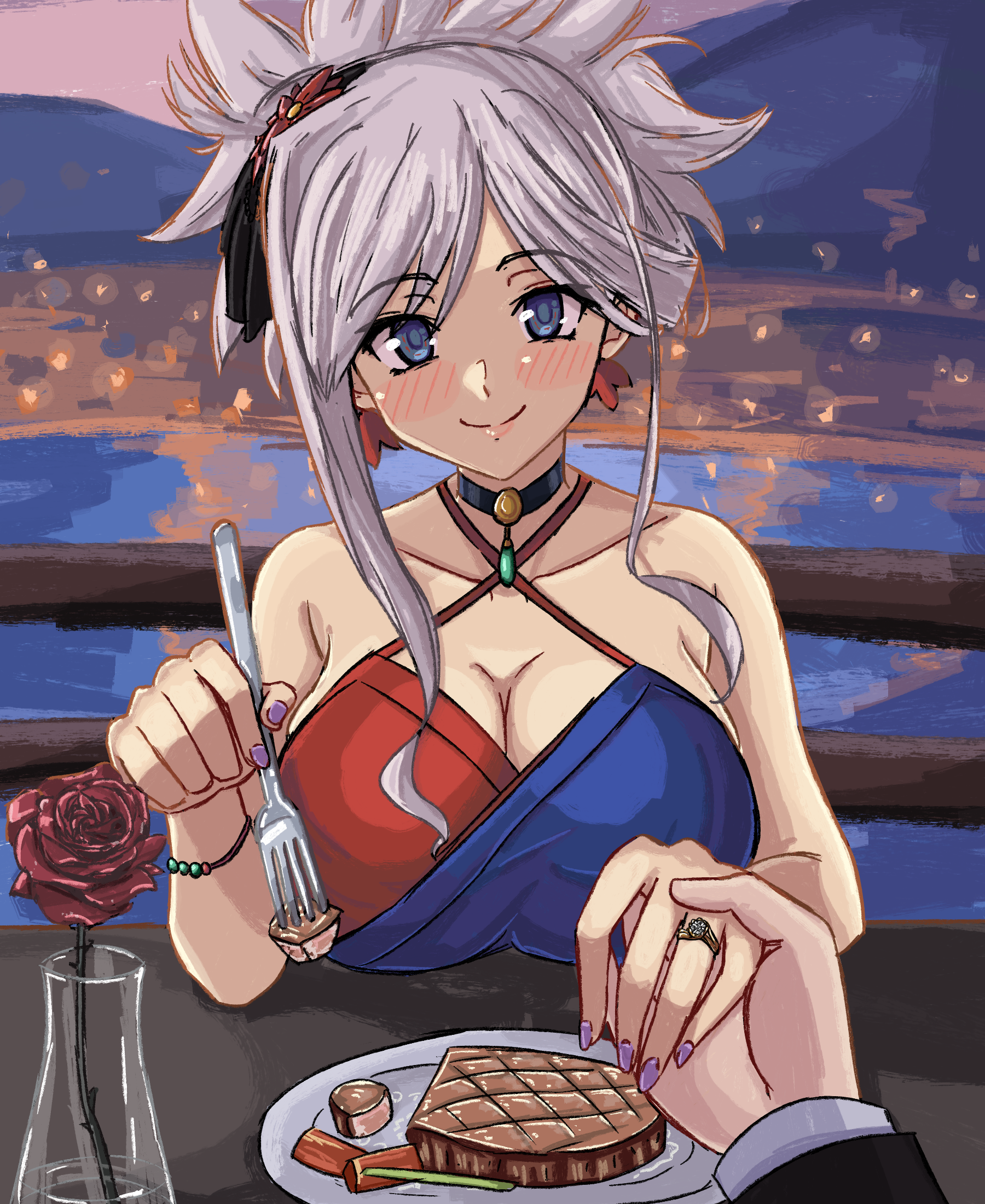 Requesting Yuria in any of the following- dressed as a shrine maiden (https://danbooru.donmai.us/posts/7632601)- dressed in Rikka from Gridman's new promotional outfit (https://i.imgur.com/DHlHZ02.jpeg)- carrying wifu like this as she looks flustered (https://i.imgur.com/z0XEN9J.jpeg)- wrapped only in cute, suggestive ribbons for my Christmas gift (https://danbooru.donmai.us/posts/9038347)- sleeping cutely and holding a plushie or bodypillow of SI (https://danbooru.donmai.us/posts/10220344)Anything cute or cutelewd would also be fine and appreciated. You can draw her genderbent if you want too!SI Ref: https://imgur.com/a/d3MKdxU