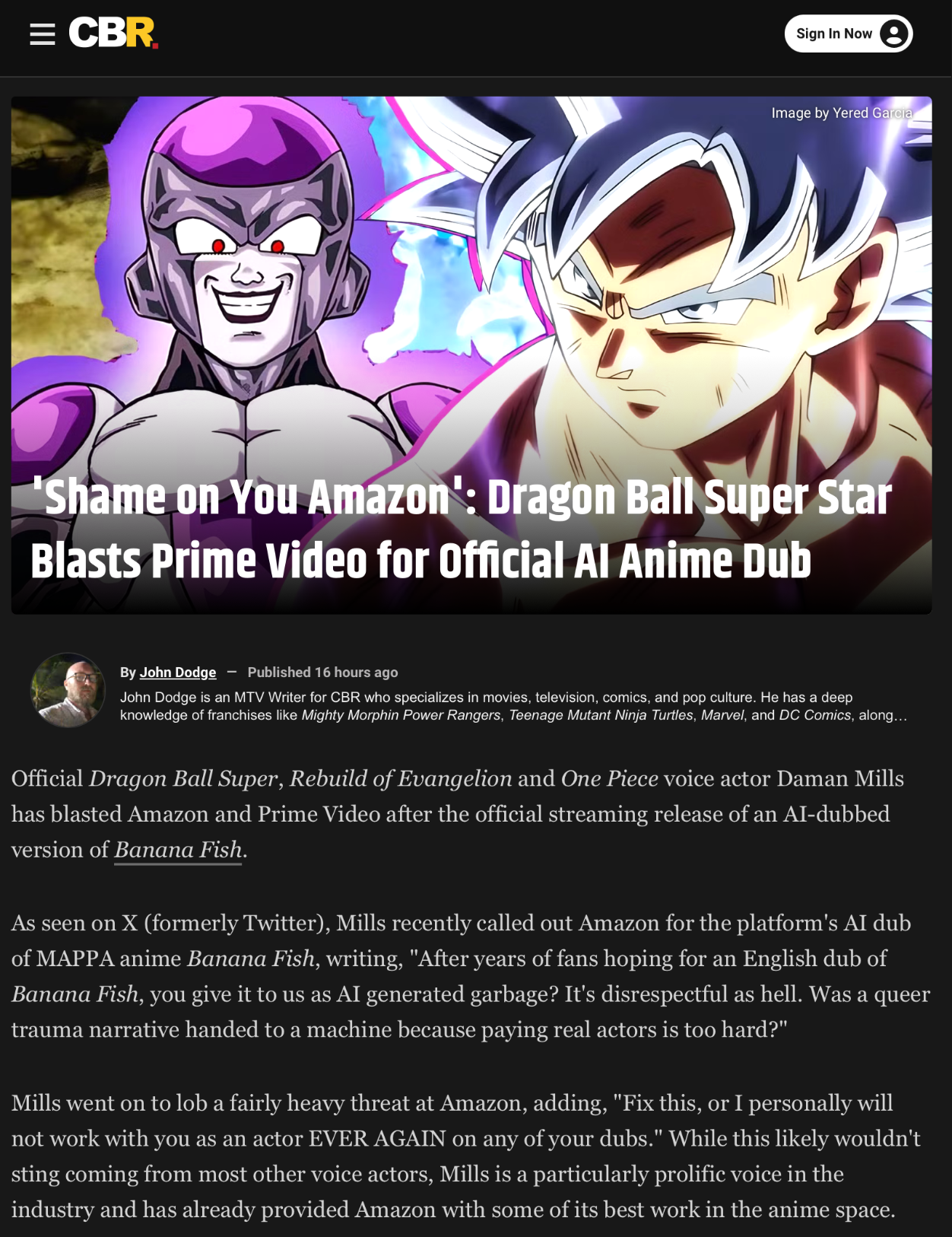 >>284121910A few after searching a little.https://www.cbr.com/prime-video-banana-fish-ai-dub/https://screenrant.com/amazon-prime-ai-generated-dub-banana-fish/https://www.imdb.com/news/ni65595595/?ref_=ttnw_art_permhttps://comicbook.com/anime/news/amazon-creates-anime-english-dub-with-ai-and-fans-arent-happy/https://www.cinemablend.com/streaming-news/dragon-ball-voice-actor-blasts-amazon-after-anime-fans-report-ai-voice-dubs>>284121970The main point you should be concerned about is whether this will spread beyond dubs, New PSG's official subs by Amazon are fucking awful but they are the only subs available, it would suck balls if Amazon were to spread their AI usage beyond dubshit too, they might even find a way to cheapen out even more and somehow spread its usage on anime beyond subs too.