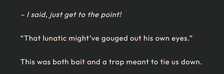 >>284125352I dropped it after the arc with the 2nd girl yeah. My issue with the pacing is you never get any time to actually let the incedents sink in. There's zero room to really get a feel for character growth cause the next incedent has happened before you ever even get any time to stew on what's happened. It also felt incredibly formulaic as so far the solution to the incidents was always just "do what the guide says and try figure out the vague wording". It was only like 20 something chapters but the pacing was the worst part. There's a reason those downtime moments are needed in story telling. You need and eb and flow in pacing or else it gets old quickly.