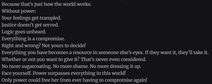 >>284123225This series has to be written by a woman right? It keeps dropping random black pills that you only ever see in women's manga and games. And I can't quite explain why but the art screams "female hands drew this"