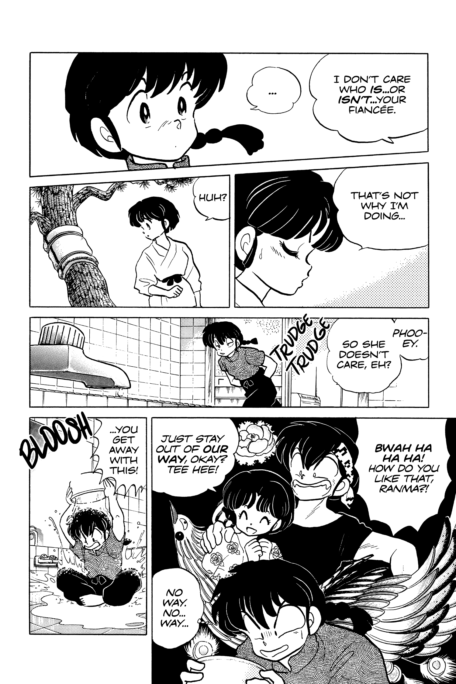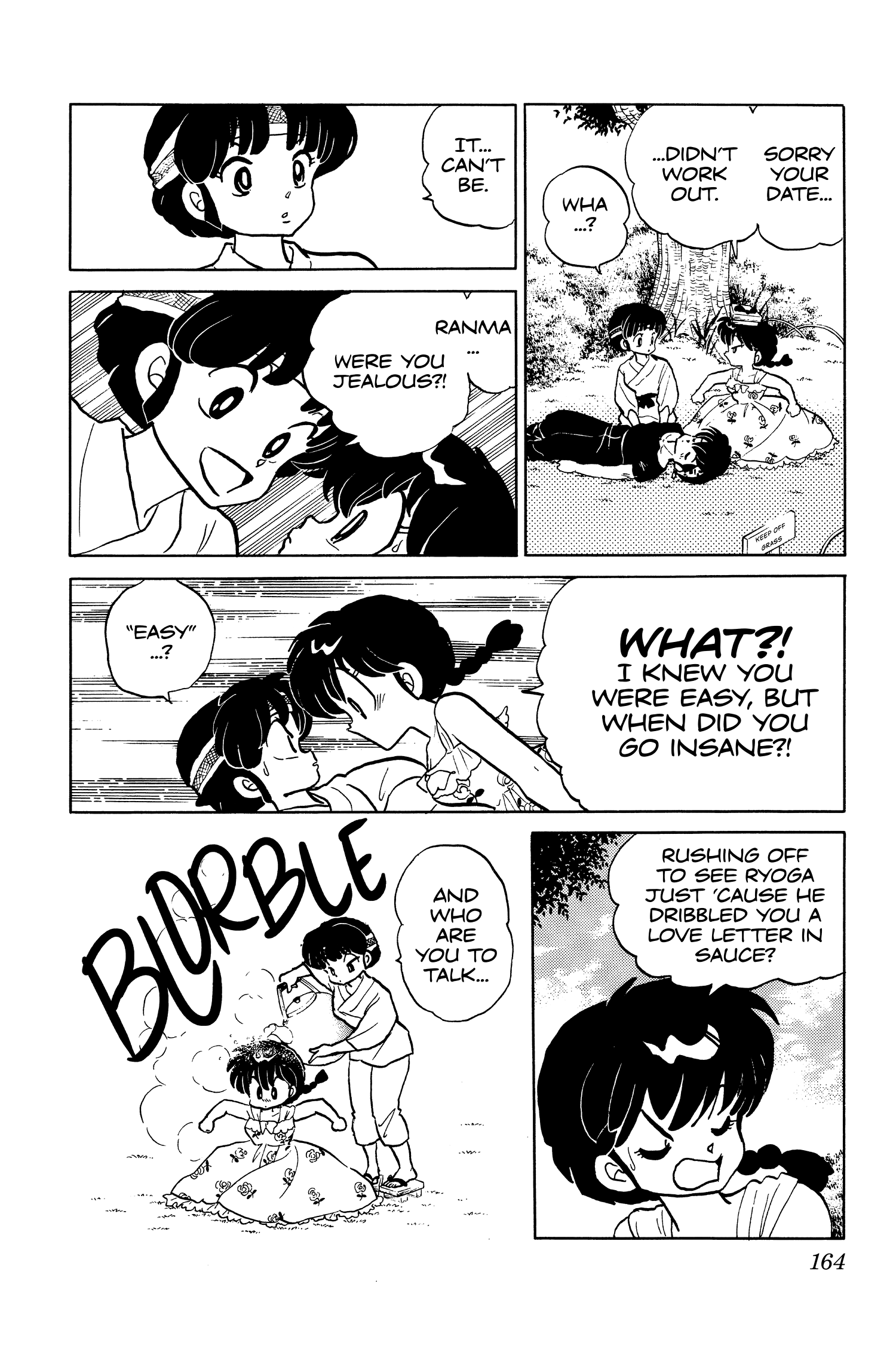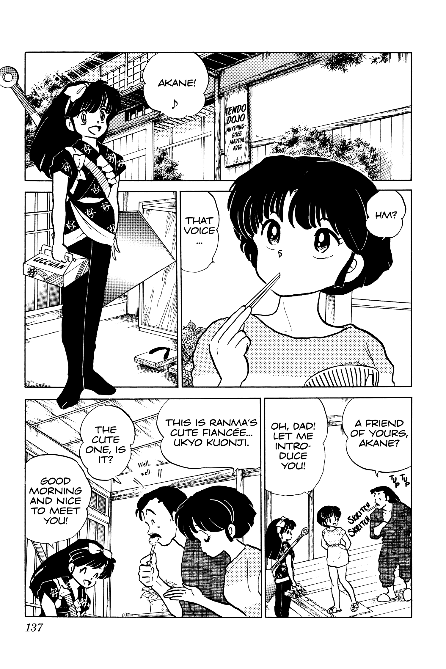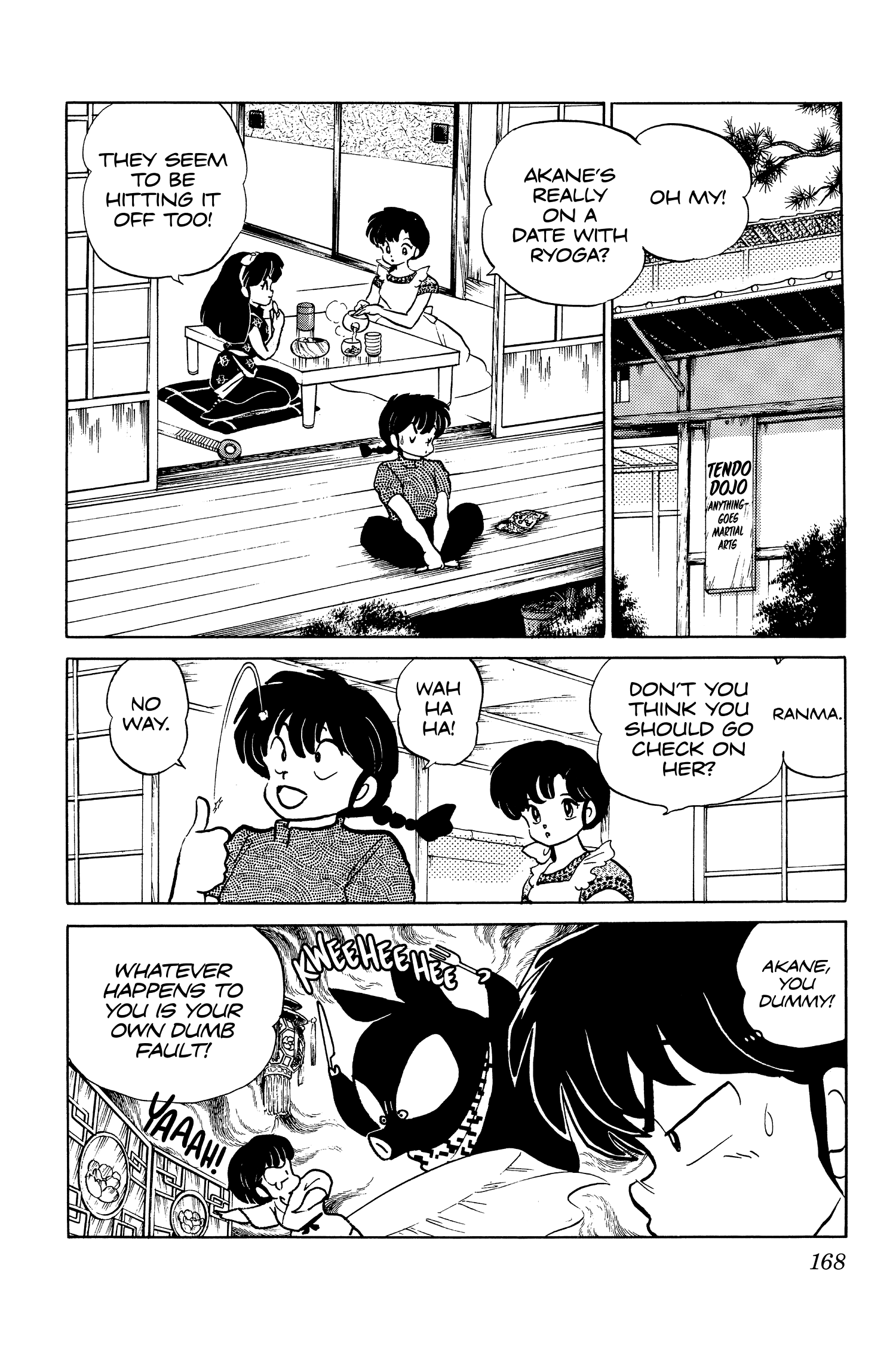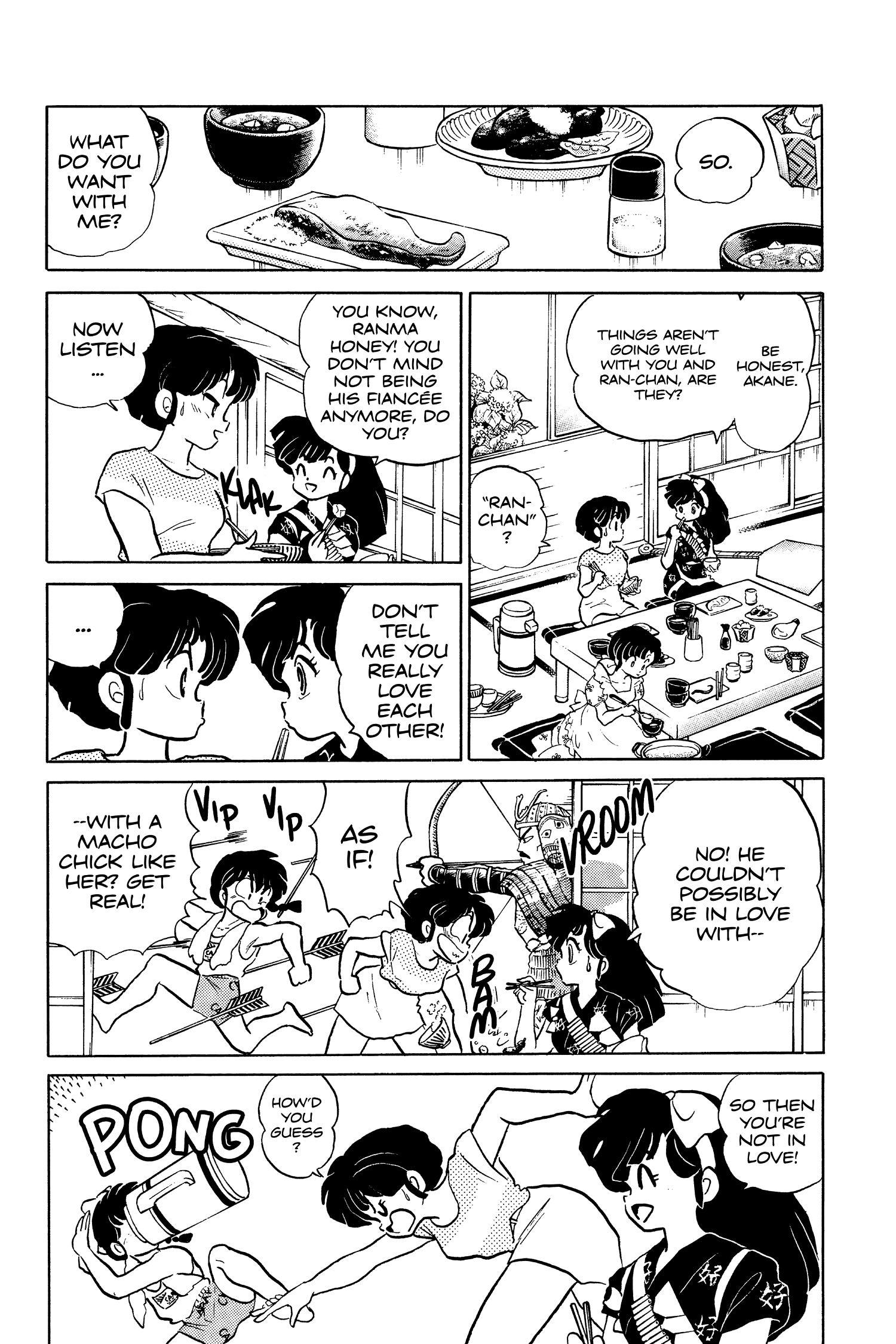 >>284154011Well, the situations aren't exactly the same, but a lot of characters are observers of Rankane antics. Like here >>284129867 with Soun, when Akane introduces Ukyo to him, she says "This is Ranma's *cute* fiancée". Even that subtle level of bitter sarcasm isn't something she uses when she's talking to Ryoga about Ranma.