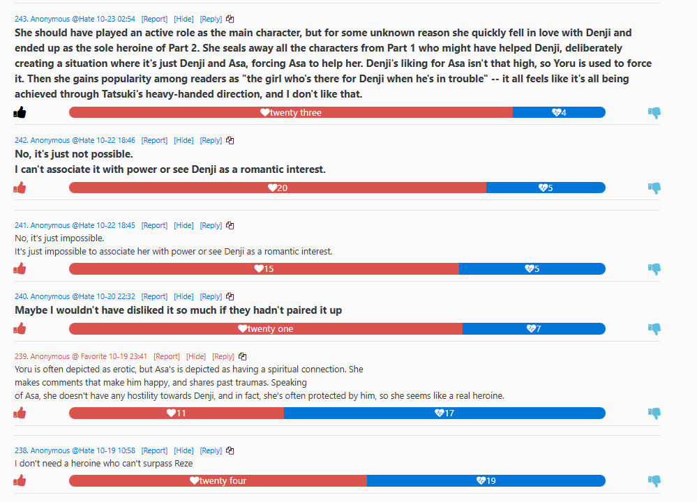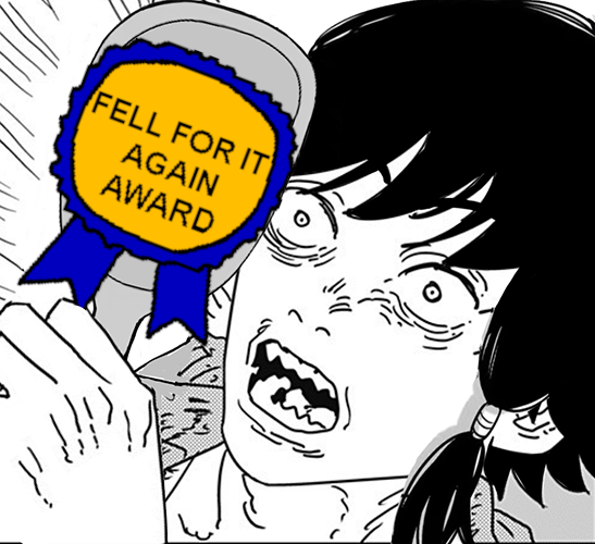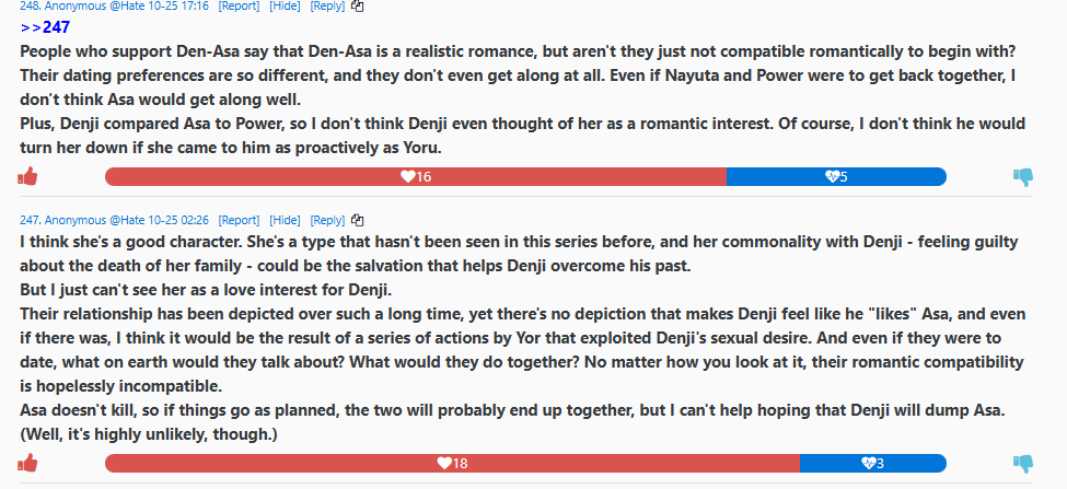Only see them seethe about shipping though. And holy shit they're really blaming their favorite pt1 characters' miseries on Asa? THIS is the reason I HATE Denji and his pathetic fans so bad tskk