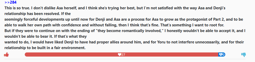 'we' here are all whining pt1 shipperfags too. And are they really blaming Asa for whatever the shit their pt1 waifus got because of Makima there?
