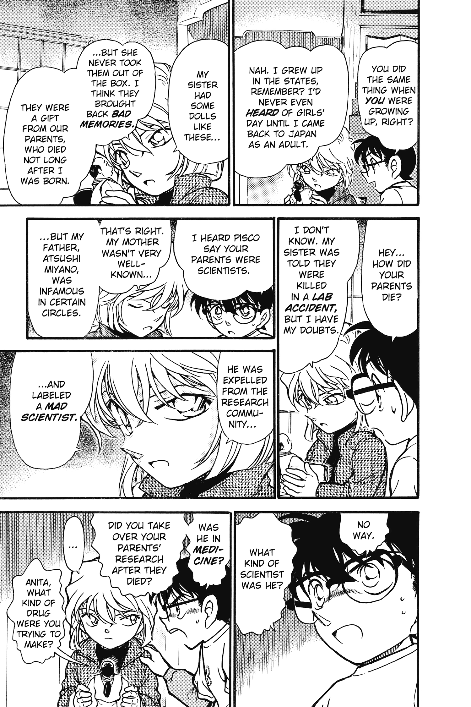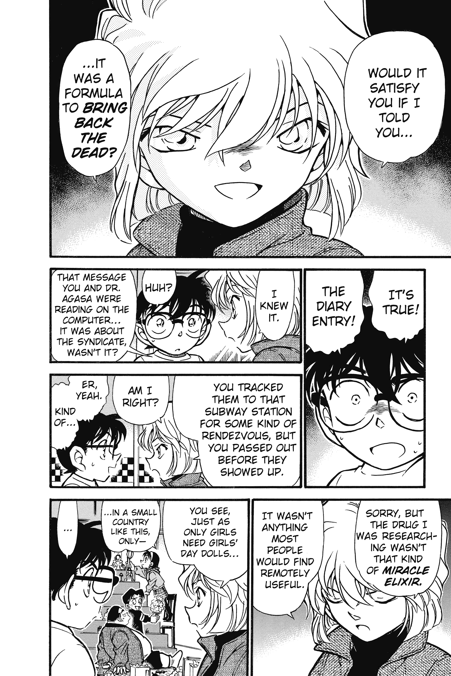 Well then maybe I'm retarded, because on my first read I definitely wasn't thinking about the BO experimenting on de-aging stuff at this point. The Ai/Conan incident was still just a an unforeseen side-effect in my book. Only when Jodie asked Vermouth why she is still so young did it click for me, but obiovusly that was the point where it was made rather obvious for the whole audience.