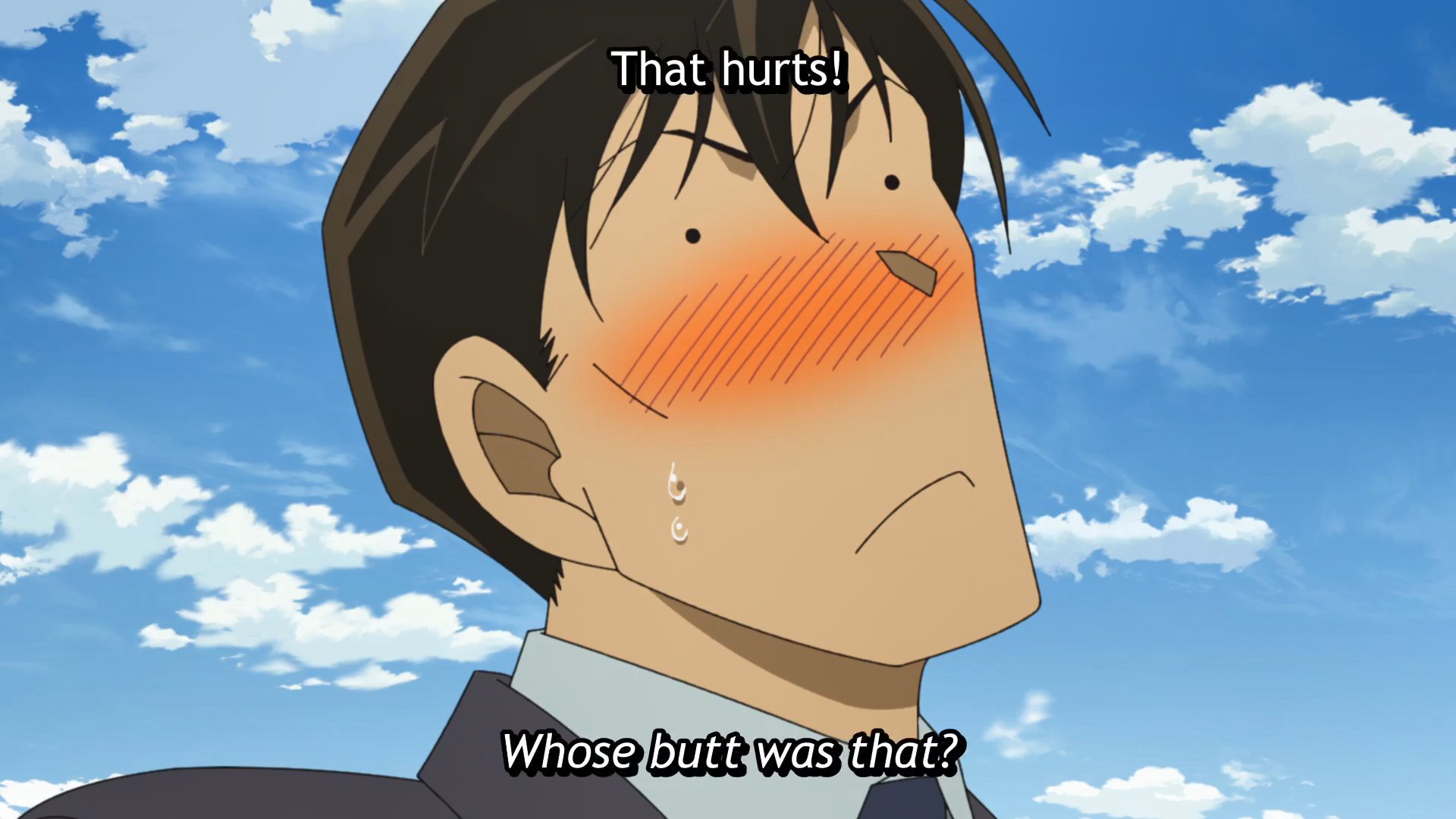 it's clearly Sato's, Gosho allows his men to admire only the butt of their true love.