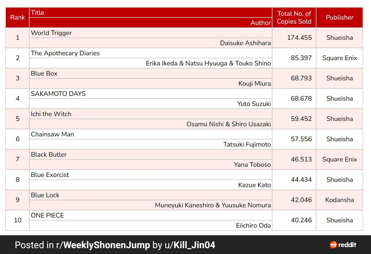 >>284389841>Top 10 best selling manga this round>FloppedYou're holding it to a higher standard than other manga to cope with its success. Its pretty sad.