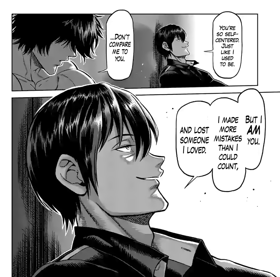 >>284421269>the tournament really gets you to root for various characters>eventually everyone turned into stoicsOmega lacks passion and emotion, It's like I am reading a dead fish in manga form.Ashura was a fervent work of art! It was dumb and it was fun in a genuine way, not in the "haha he can't breath lol Mukaku go chop chop"Even Sawada of all things was a character that was more than just "the faggot who spins", he showed true friendship to Rihito and the small CEO who was threatened and deleted from the story. There was no need for him to fight Julius and he still tried, showing that he was a real fighter with the desire to fight. And now? We are reading some bullshit battle royale with dozens of fake fighters and an undead protagonist that can't even explain his own unreasonable actions. The guys who try to fight Shen despite the odds? It doesn't feel genuine. It's like they are only doing that for the meta reason of being filler for Sandro so this emptiness can go on and on and on.