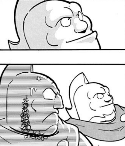 >>284422422Kinda wish the villains were just a little smarter sometimes, because justice chojin do have horrible weaknesses at times that are never exploited, which are very rarely used strategically Gaslight kinnikuman during the match that terryman is tricking him somehow, he'll instantly buy it for no reason, and then kinnikuman will be weighed down by the iron sand and unable to fight. Because justice chojin are not allowed to doubt or hate each other without the sand inside their bodies making them immobile