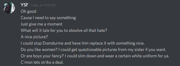 >>284433871Does anyone have that discord screencap of lolyfag throwing a tantrum at YCake like an insecure little bitch? That dude is funny when he's crashing out.