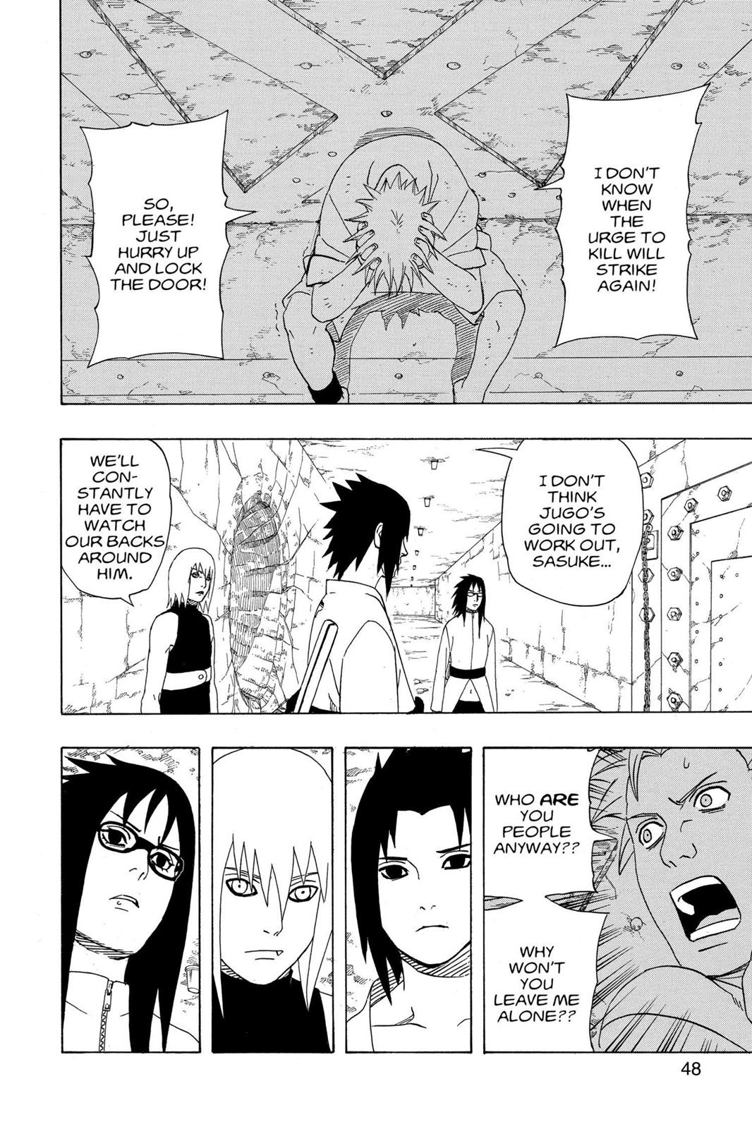 Jugo's character is a mess.>His age doesn't match up with when Anko got the Curse Mark.>Kimimaro somehow went to an entirely different hideout just to tell Jugo he is going to get Sasuke after getting taken off life-support.