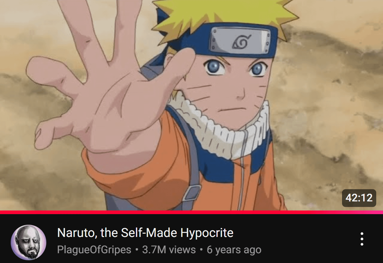 >>284442149And people still seethe at this video for saying Naruto isn't the underdog the story wants him to be, kek.
