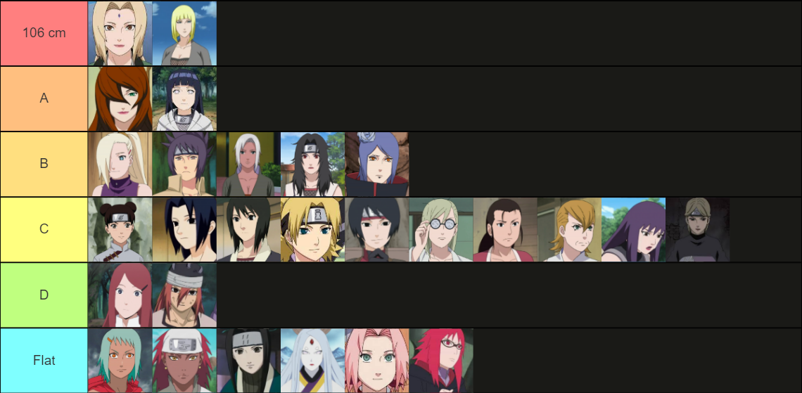 >>284454171According to Ultimate Ninja Storm, every female character aside from Hinata, Temari and possibly Tenten is one.