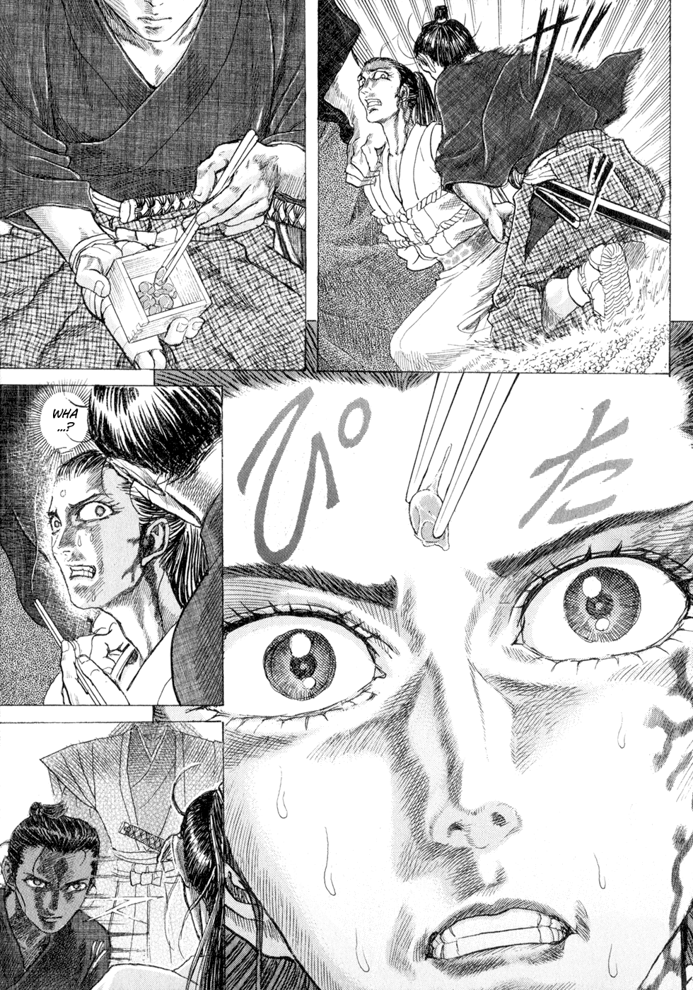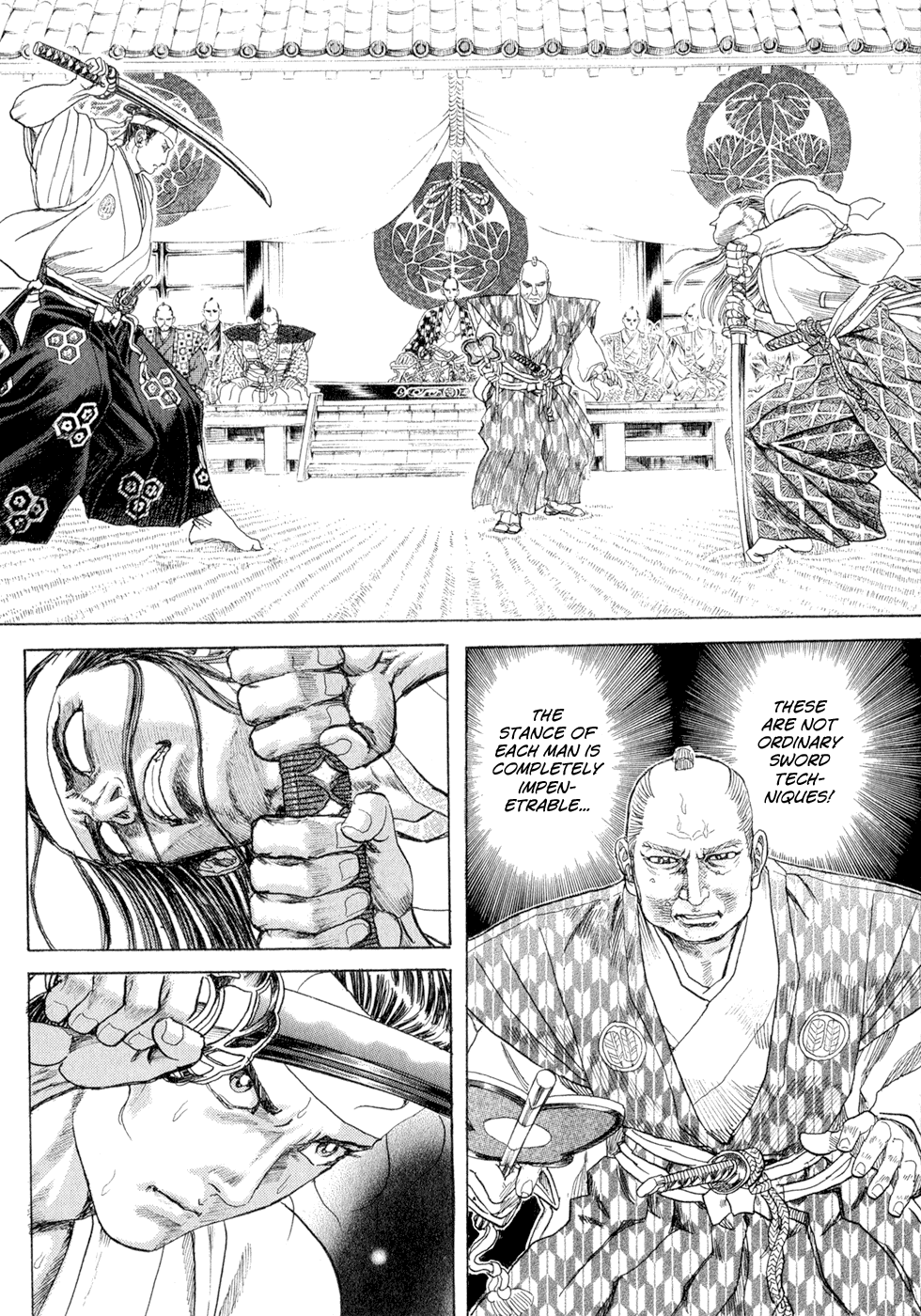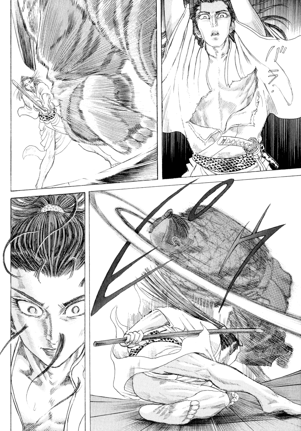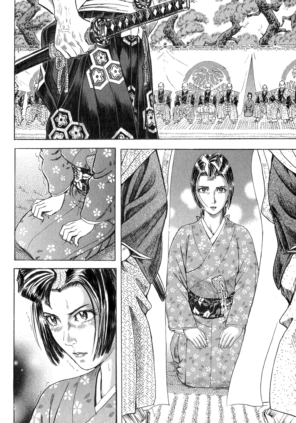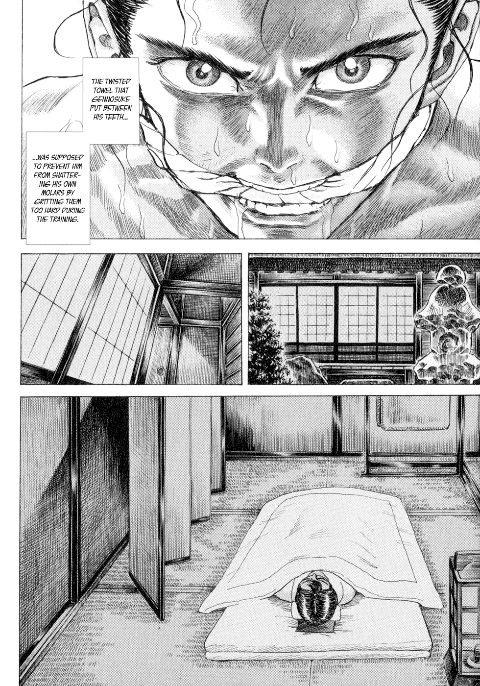 I read the novel for the first time and it's amazing how much the manga added. The story of Gennosuke and Seigen in the book is like 10 pages long and it's one of the less interesting stories; their whole rivalry is just about the women. Basically everything except the two's signature techniques is original to the manga.All the crazy details in this volume alone: the pressure point stuff, the "beautification," the bean-cutting initiation, Kogan being senile but still deadly. All manga-original.