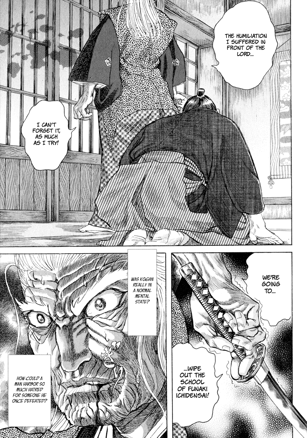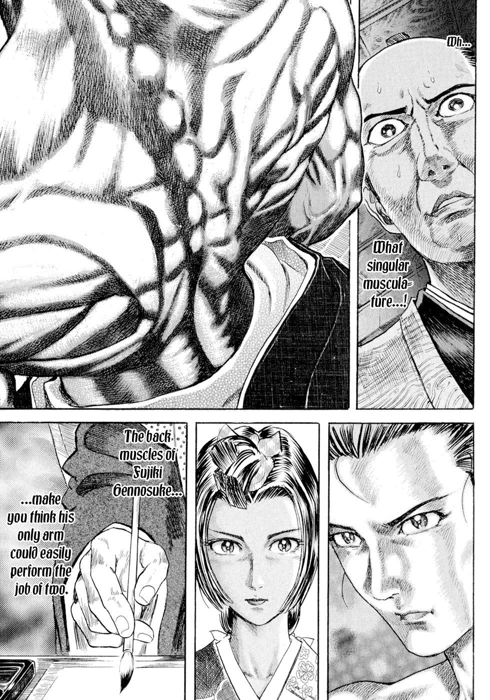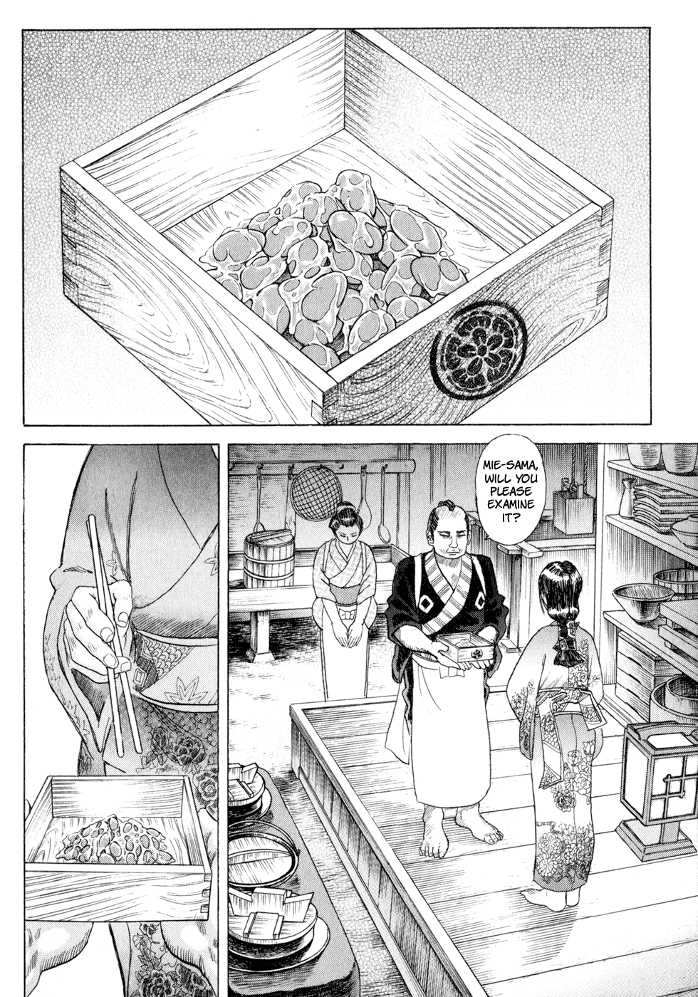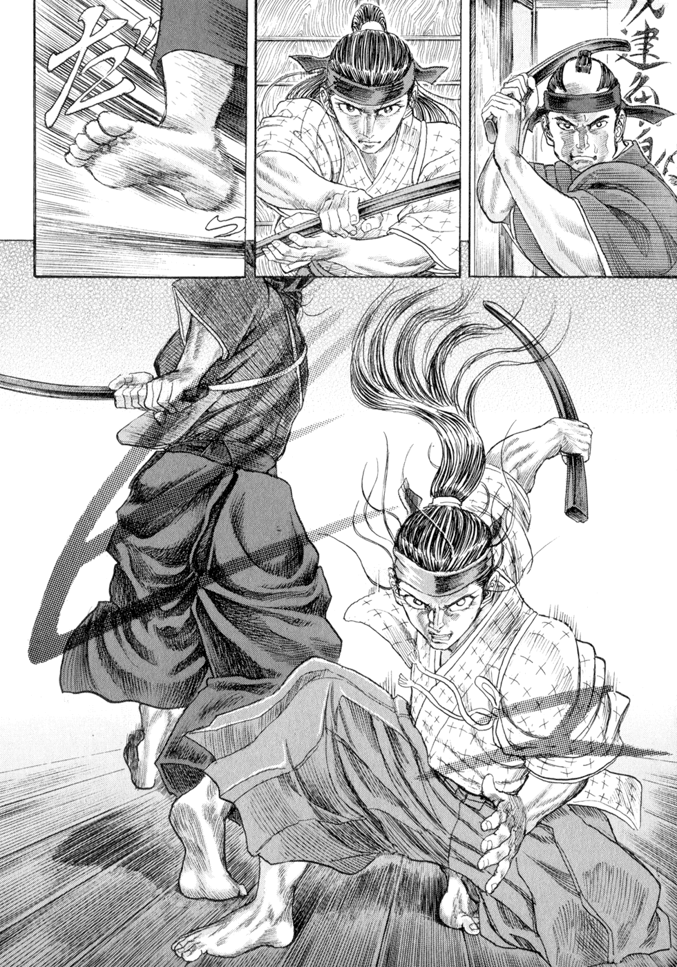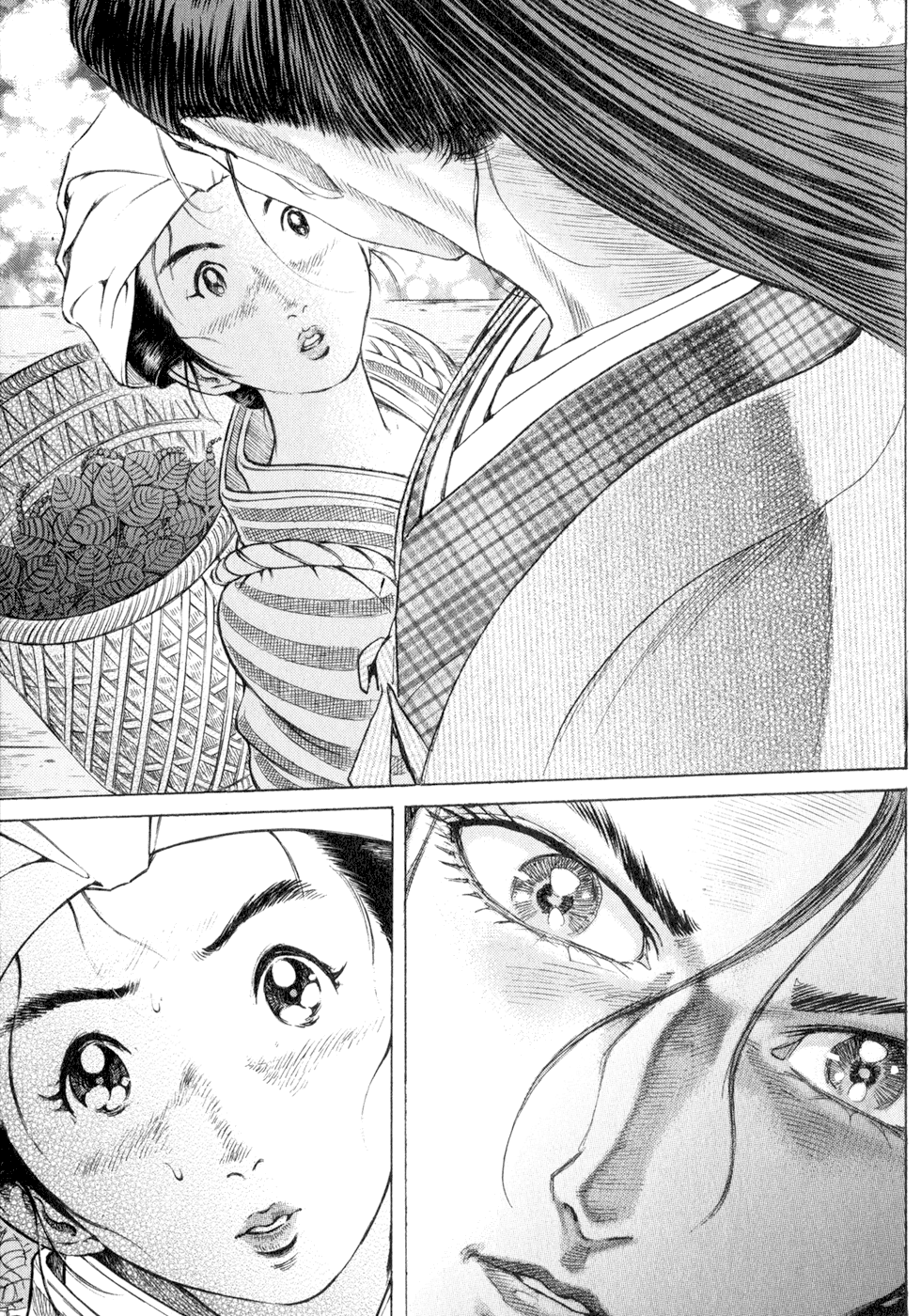 I read the novel for the first time and it's amazing how much the manga added. The story of Gennosuke and Seigen in the book is like 10 pages long and it's one of the less interesting stories; their whole rivalry is just about the women. Basically everything except the two's signature techniques is original to the manga.All the crazy details in this volume alone: the pressure point stuff, the "beautification," the bean-cutting initiation, Kogan being senile but still deadly. All manga-original.