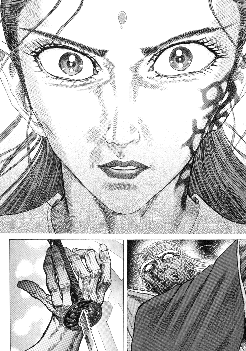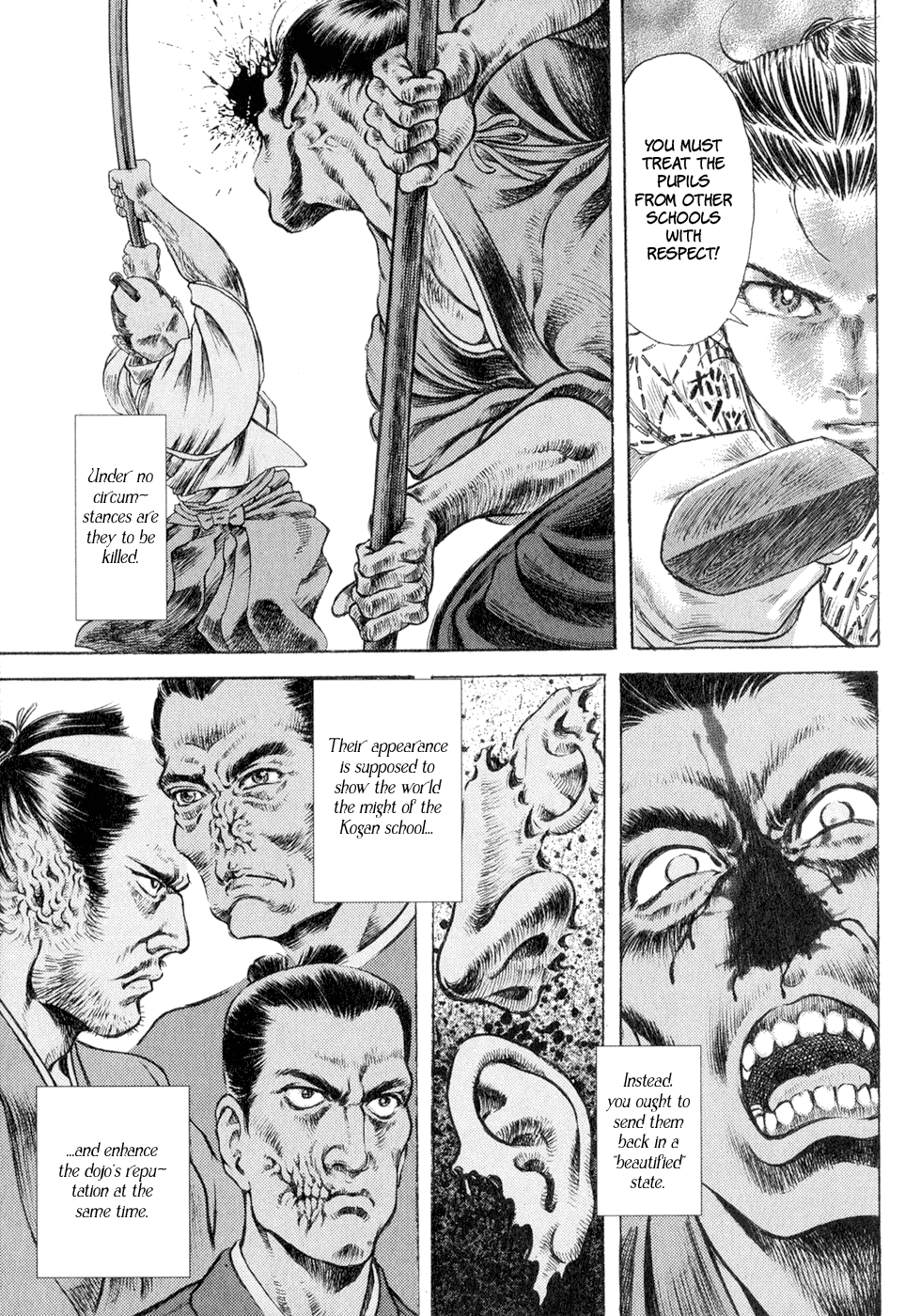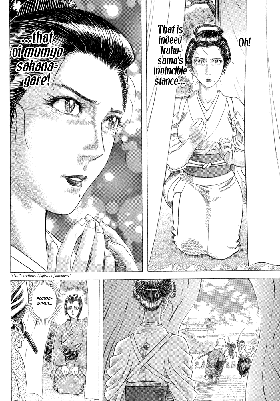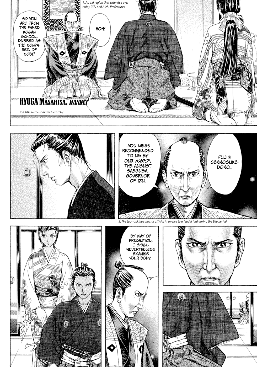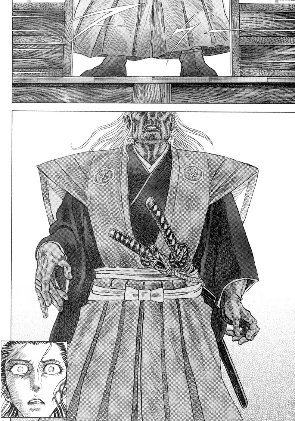 I read the novel for the first time and it's amazing how much the manga added. The story of Gennosuke and Seigen in the book is like 10 pages long and it's one of the less interesting stories; their whole rivalry is just about the women. Basically everything except the two's signature techniques is original to the manga.All the crazy details in this volume alone: the pressure point stuff, the "beautification," the bean-cutting initiation, Kogan being senile but still deadly. All manga-original.