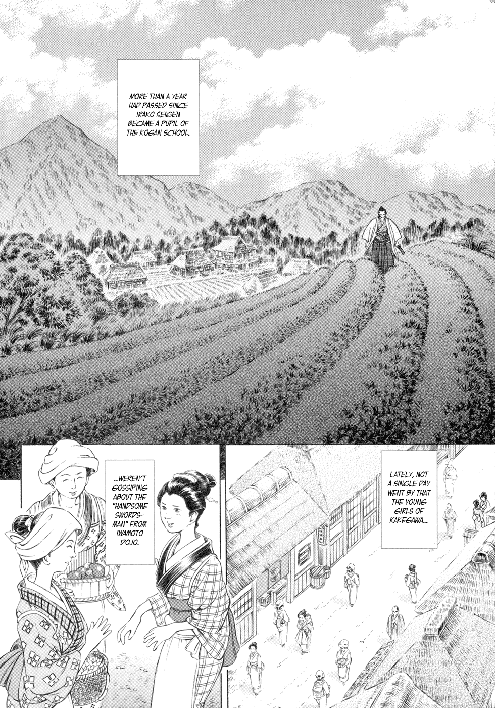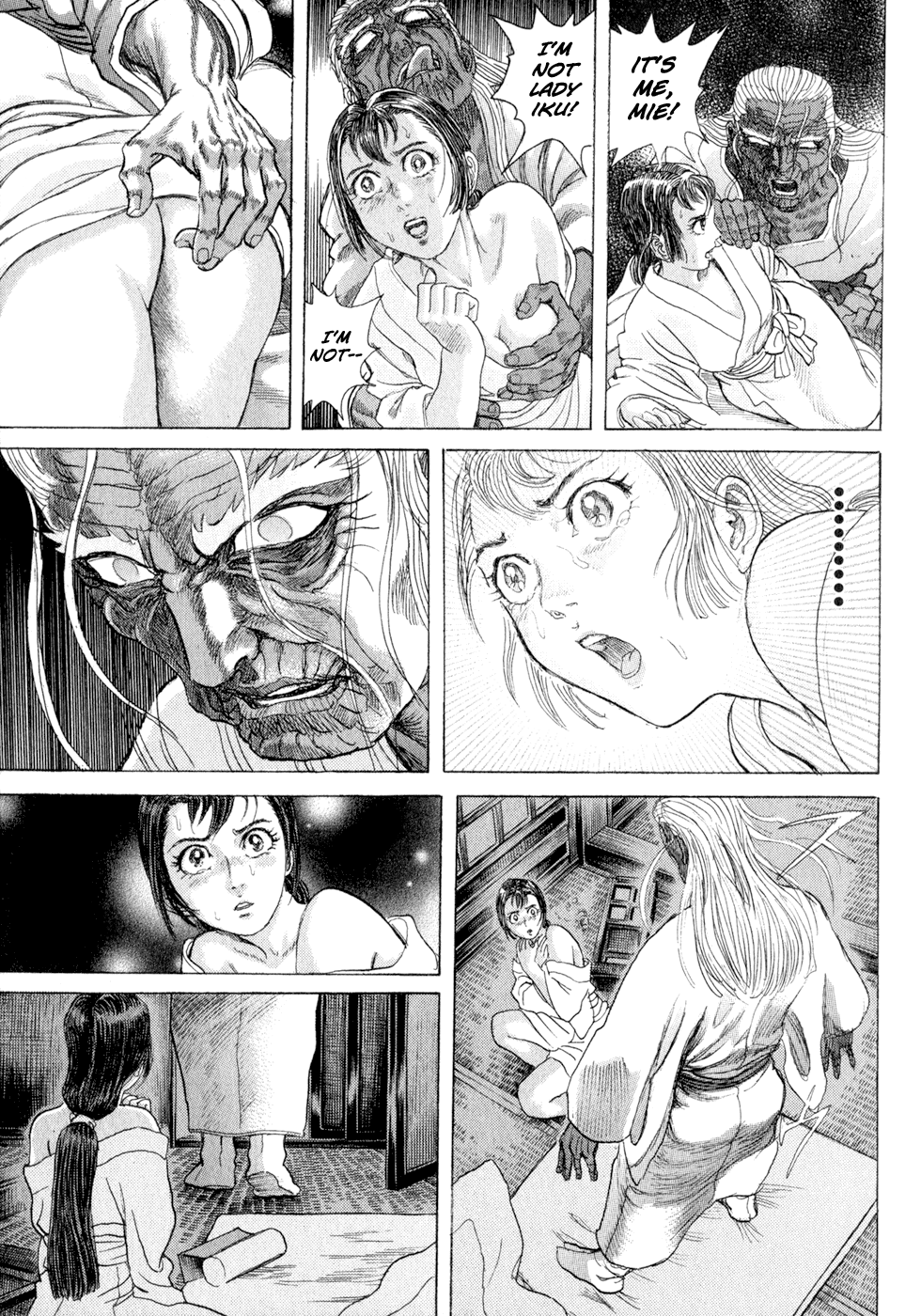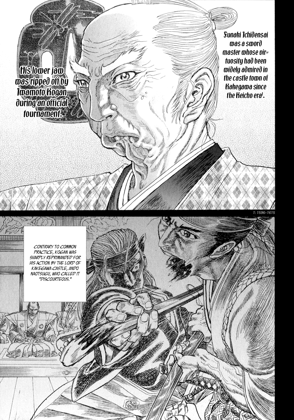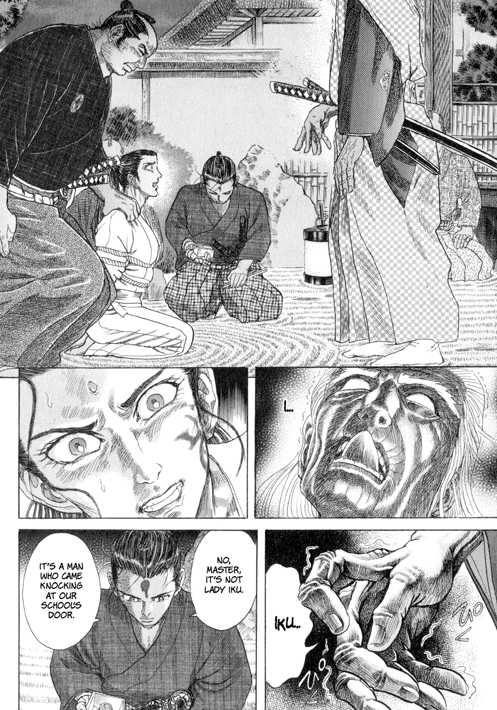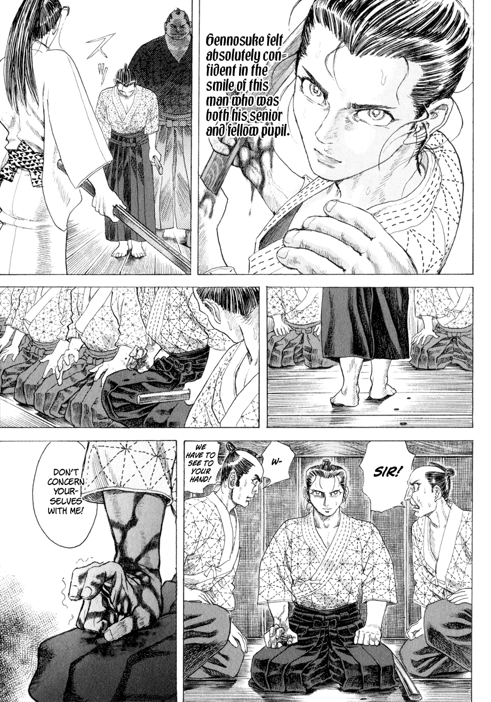 I read the novel for the first time and it's amazing how much the manga added. The story of Gennosuke and Seigen in the book is like 10 pages long and it's one of the less interesting stories; their whole rivalry is just about the women. Basically everything except the two's signature techniques is original to the manga.All the crazy details in this volume alone: the pressure point stuff, the "beautification," the bean-cutting initiation, Kogan being senile but still deadly. All manga-original.