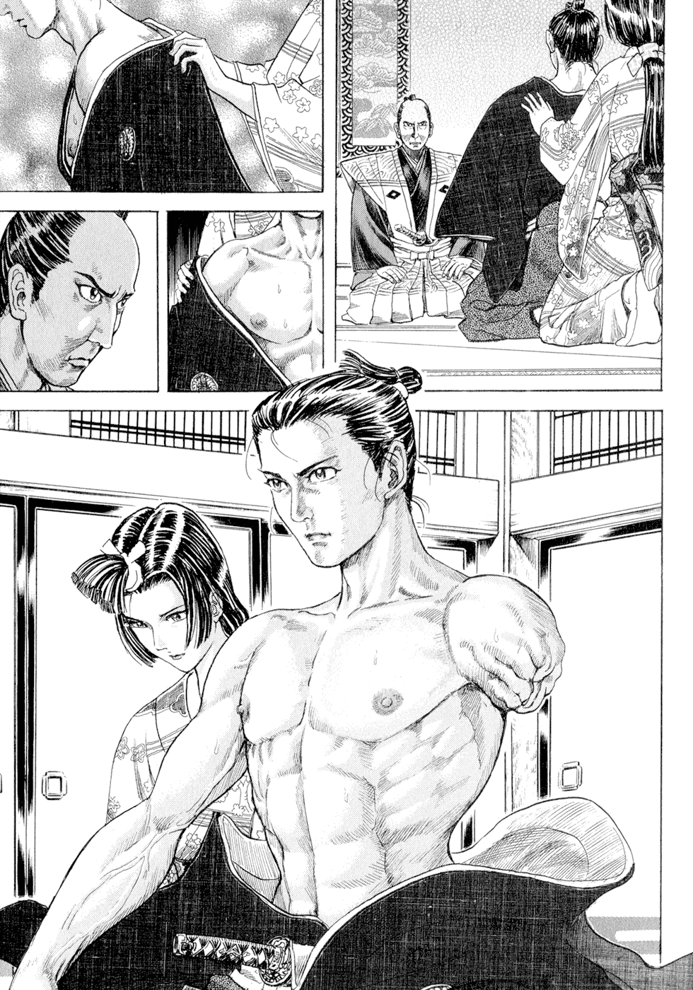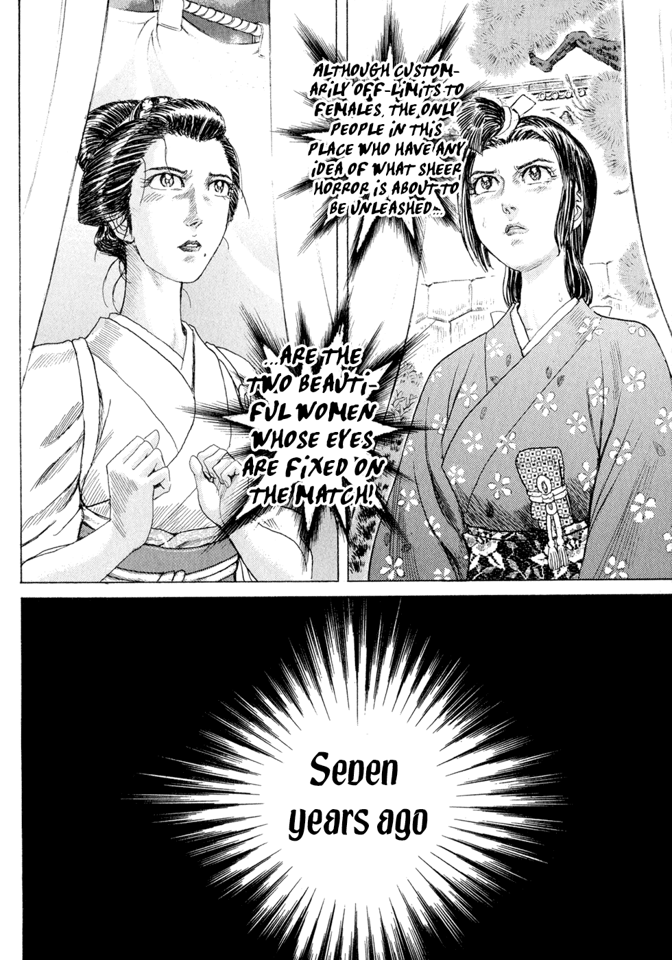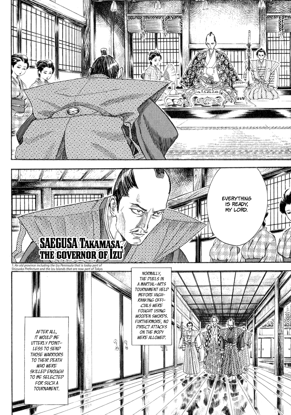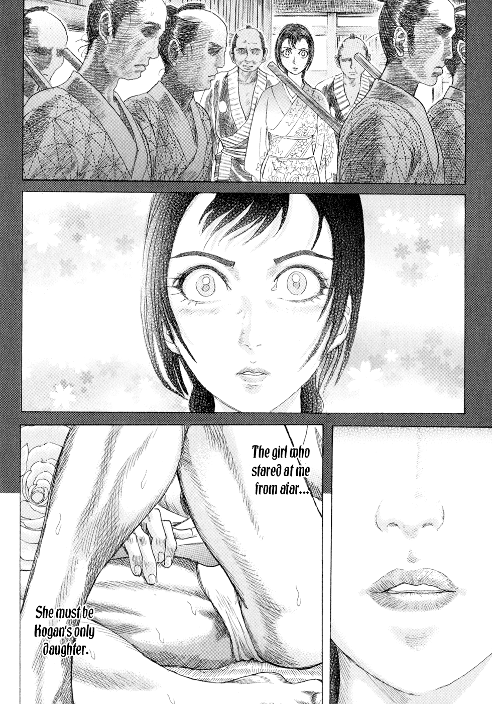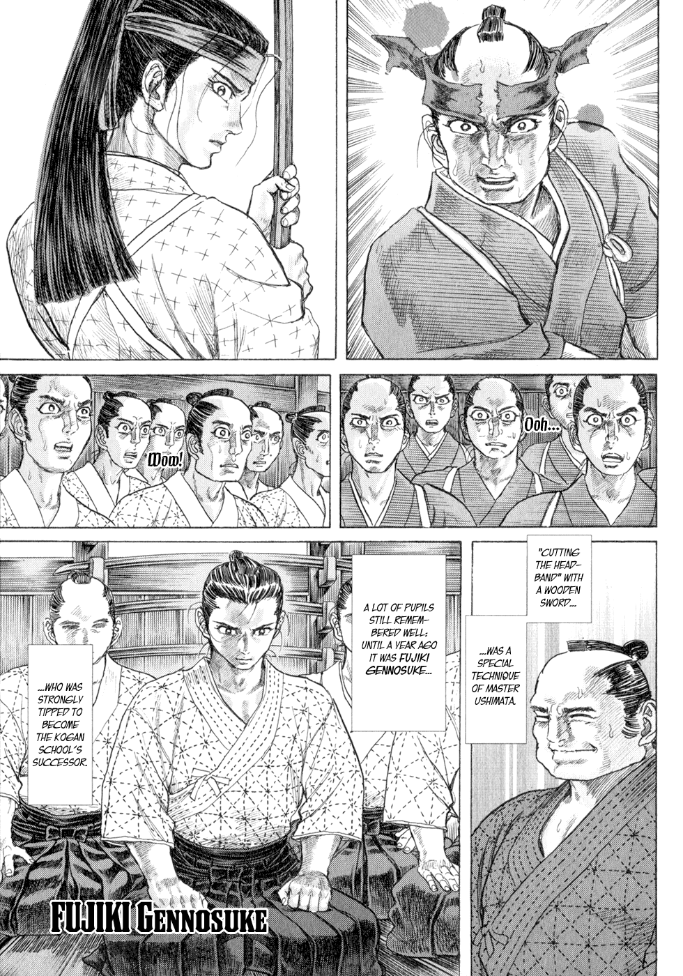 I read the novel for the first time and it's amazing how much the manga added. The story of Gennosuke and Seigen in the book is like 10 pages long and it's one of the less interesting stories; their whole rivalry is just about the women. Basically everything except the two's signature techniques is original to the manga.All the crazy details in this volume alone: the pressure point stuff, the "beautification," the bean-cutting initiation, Kogan being senile but still deadly. All manga-original.