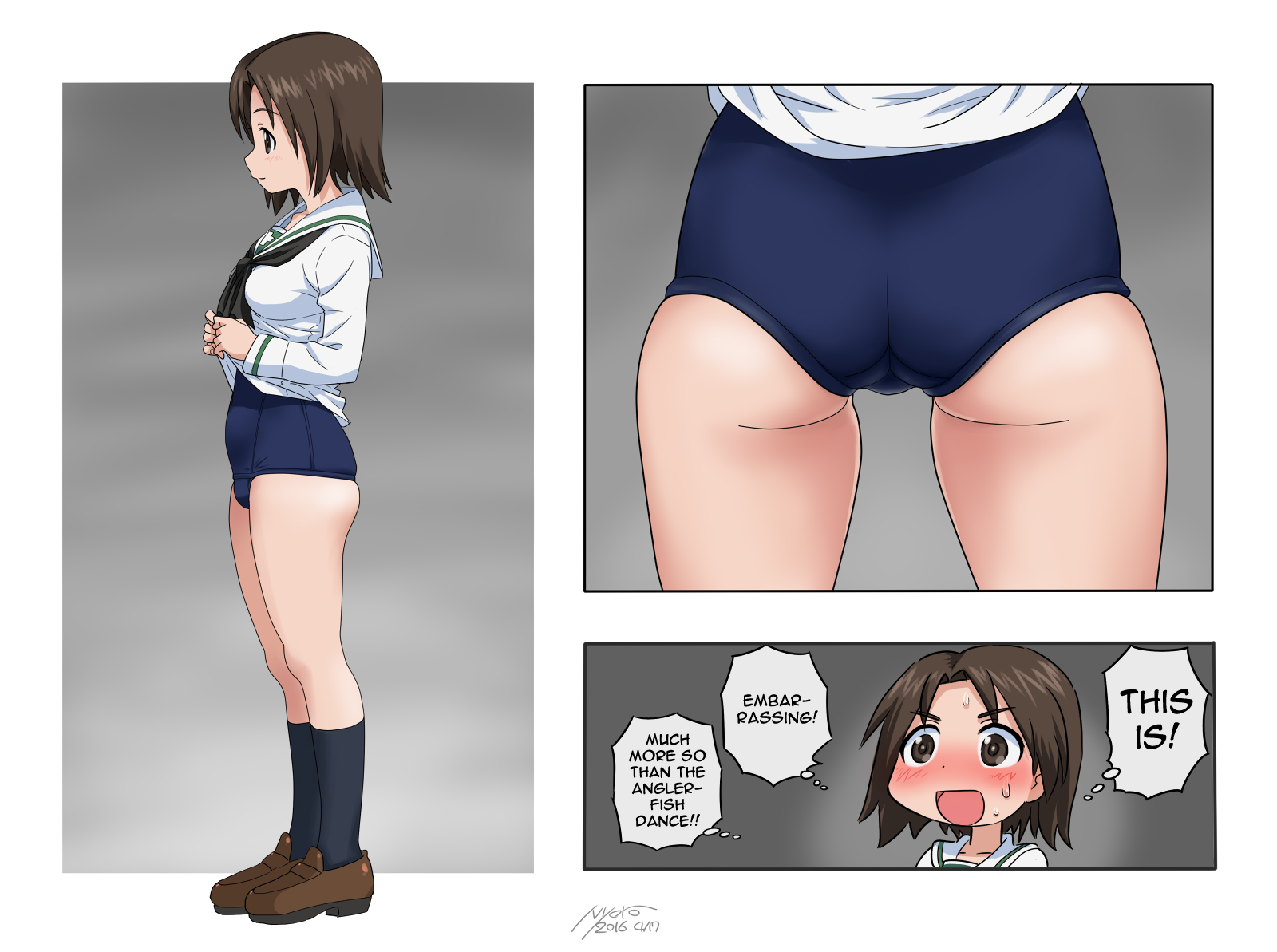 Shiho squeezing into Miho and Maho's boko panties